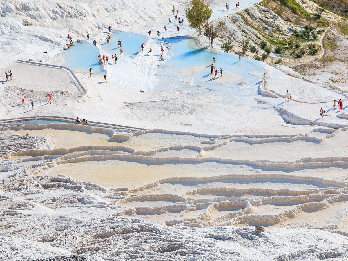 The journey continues to Ephesus, one of the best-preserved ancient cities in the world, where marble streets, temples, and libraries reflect the glory of the Roman era. From there, travel to Pamukkale, famous for its white travertine terraces and the ancient city of Hierapolis.