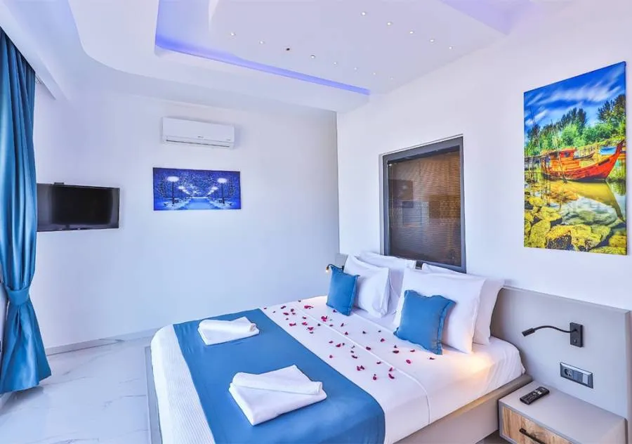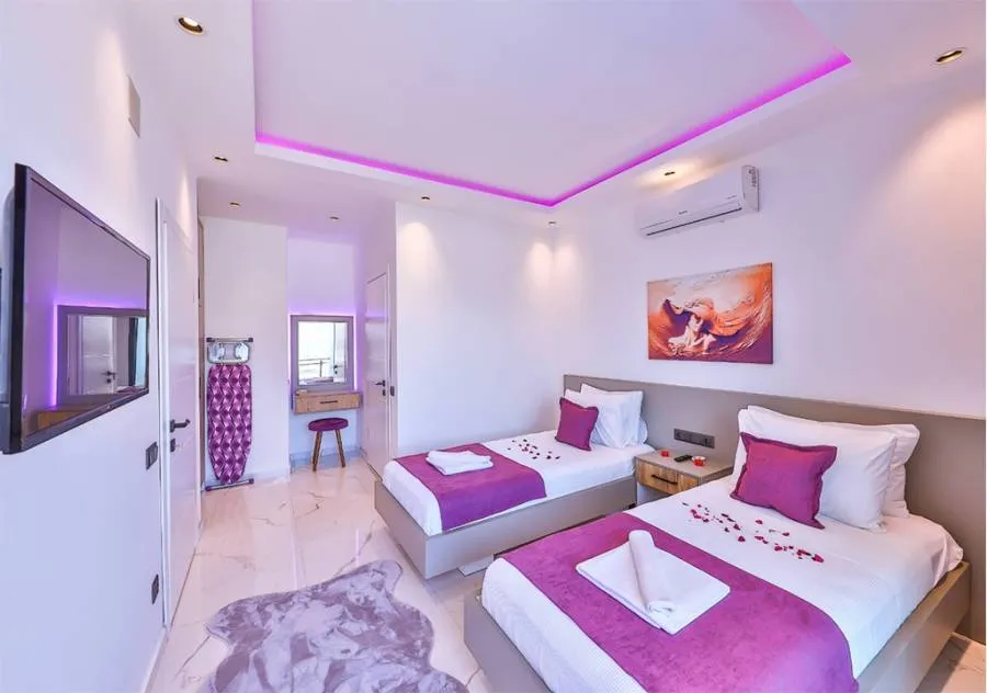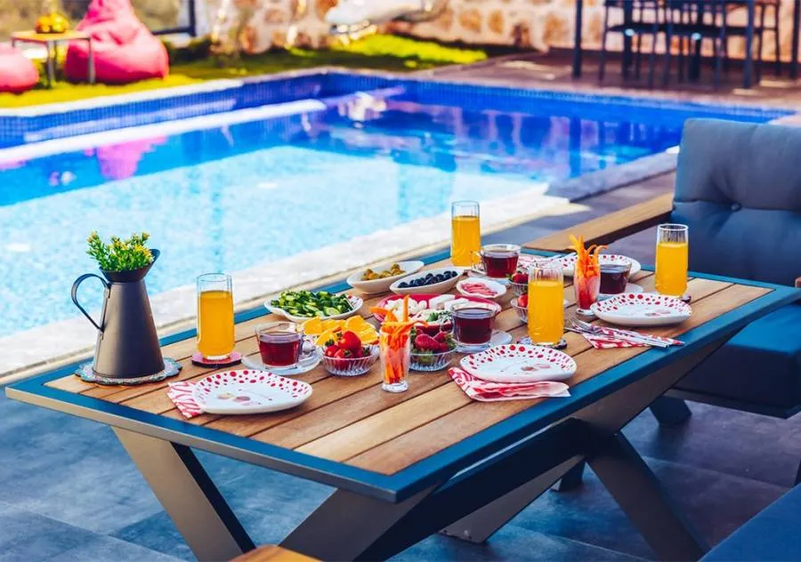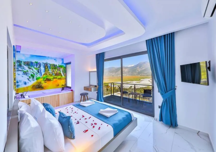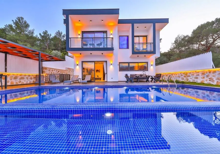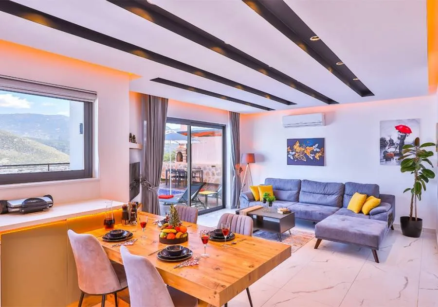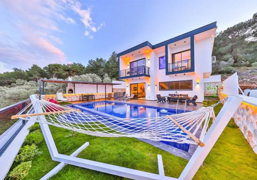 Villa, located in Yeşilköy, Kalkan, is a villa with 2 bedrooms and a capacity for 4 people. Offering a peaceful holiday away from the city noise amidst nature, our villa, with its pool area hidden from the outside, is suitable for conservative families and honeymoon couples.