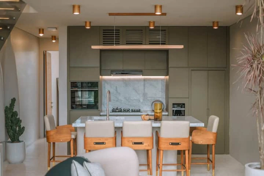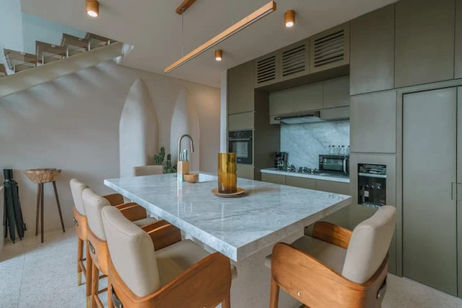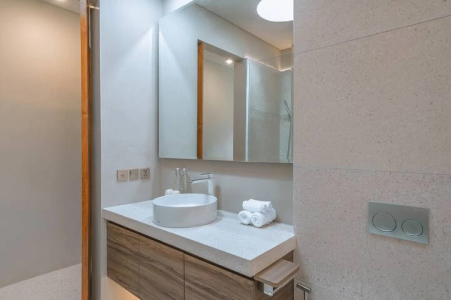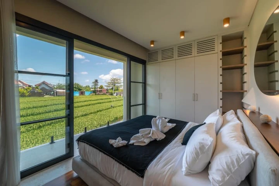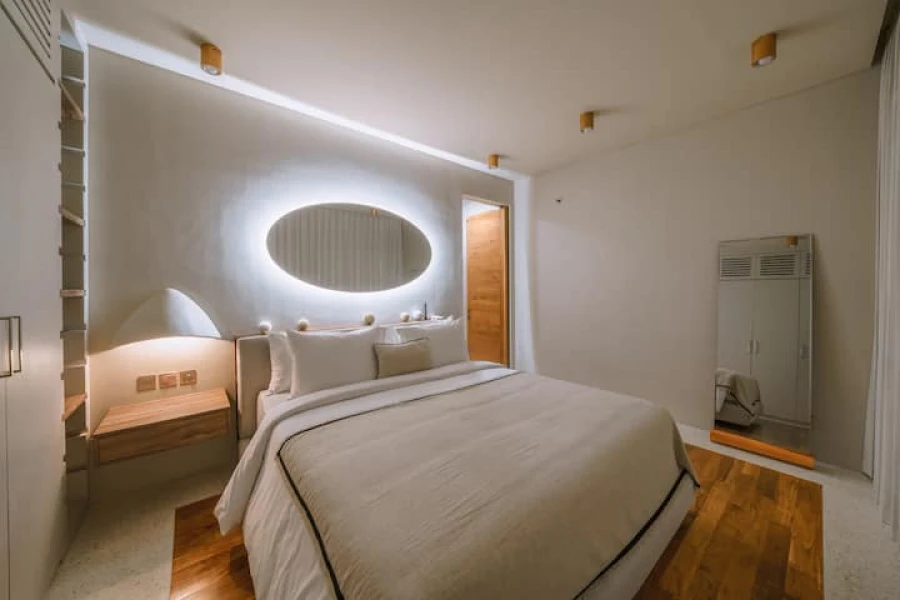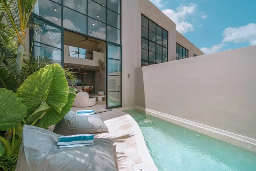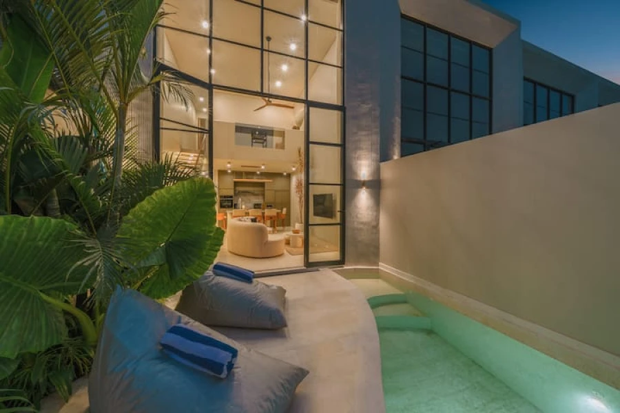Canggu'nun kalbinde mükemmel bir konumda yer alan şık 2 yatak odalı villamızda modern lüksü deneyimleyin. Bu villa, üst düzey olanaklar, merkezi konum ve minimalist bir tasarım sunmaktadır. Akıllı TV'li geniş bir oturma odasına sahip zarif, açık planlı bir yaşam alanına adım atın. Yemek alanı, yemek hazırlamak veya özel yemek servisinin keyfini çıkarmak için mükemmel olan şık, tam donanımlı bir mutfağa açılmaktadır.