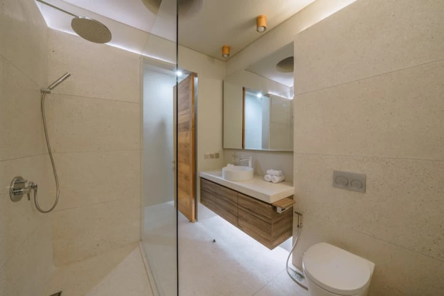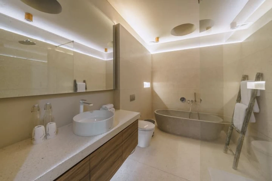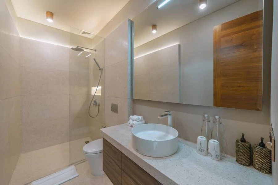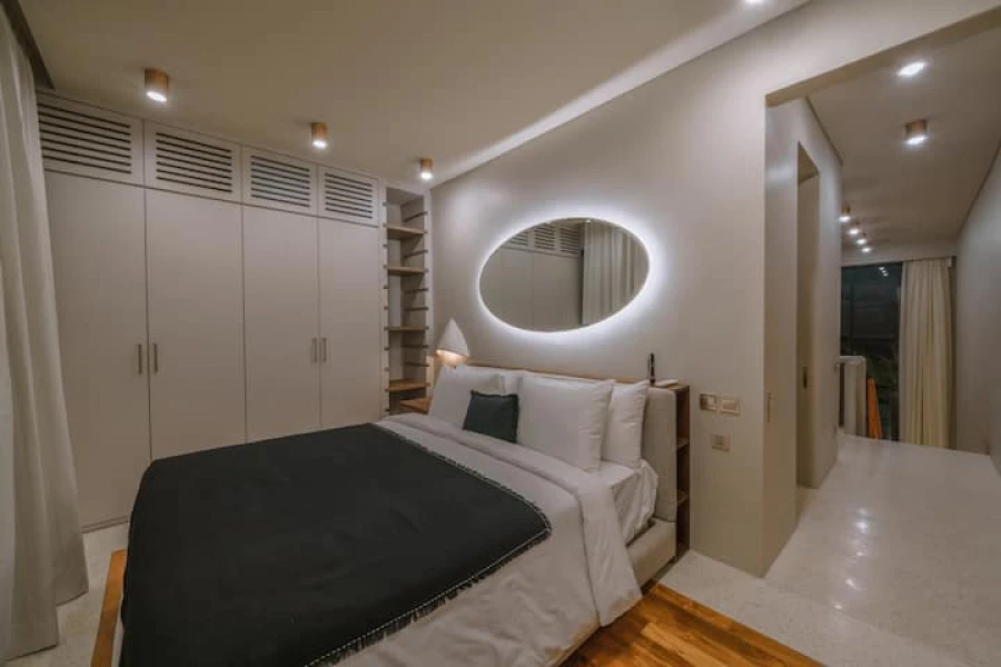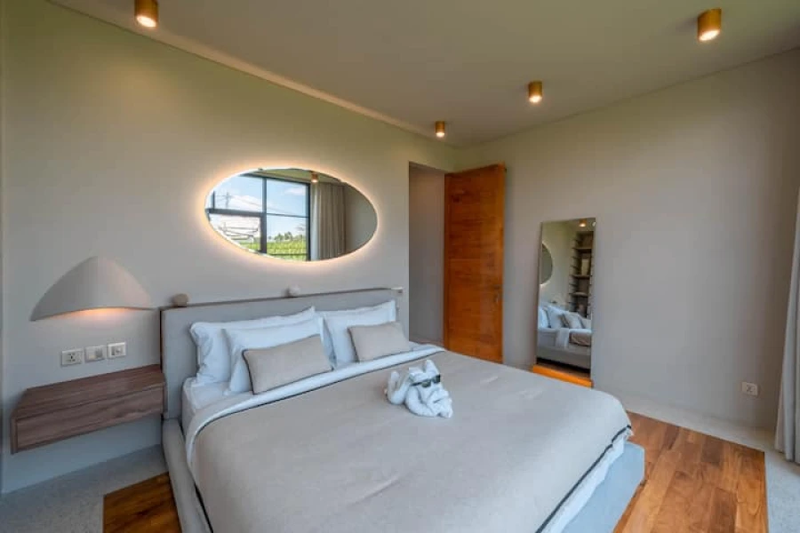 Her iki yatak odasında da konforlu king-size yataklar, özel banyolar ve geniş gardırop alanları bulunmaktadır. Plaja sadece 10 dakikalık sürüş mesafesinde bulunan bu villa, huzuru kolaylıkla birleştiriyor. Salonda ücretsiz karşılama içeceği ikram edilmektedir!