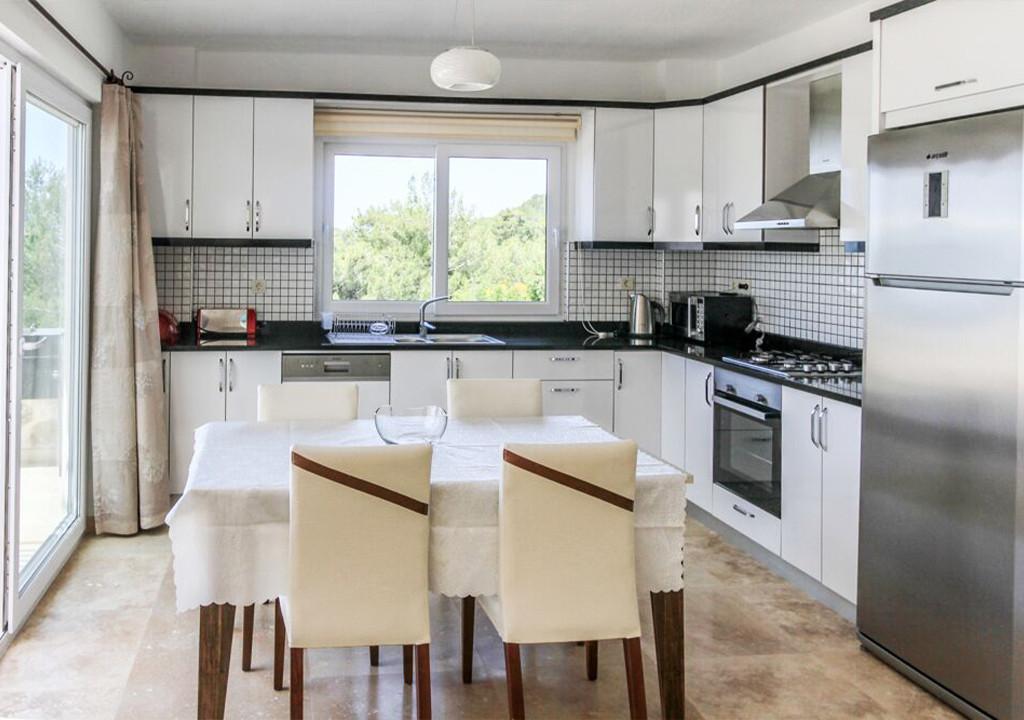 Mutfak: Modern Amerikan mutfağı. Buzdolabı, bulaşık makinesi, fırın, 4 gözlü ocak (ankastre), mikrodalga fırın, elektrikli su ısıtıcısı, su sebili, 6 kişilik yemek takımı, tava, tencere, çatal bıçak takımı vb.