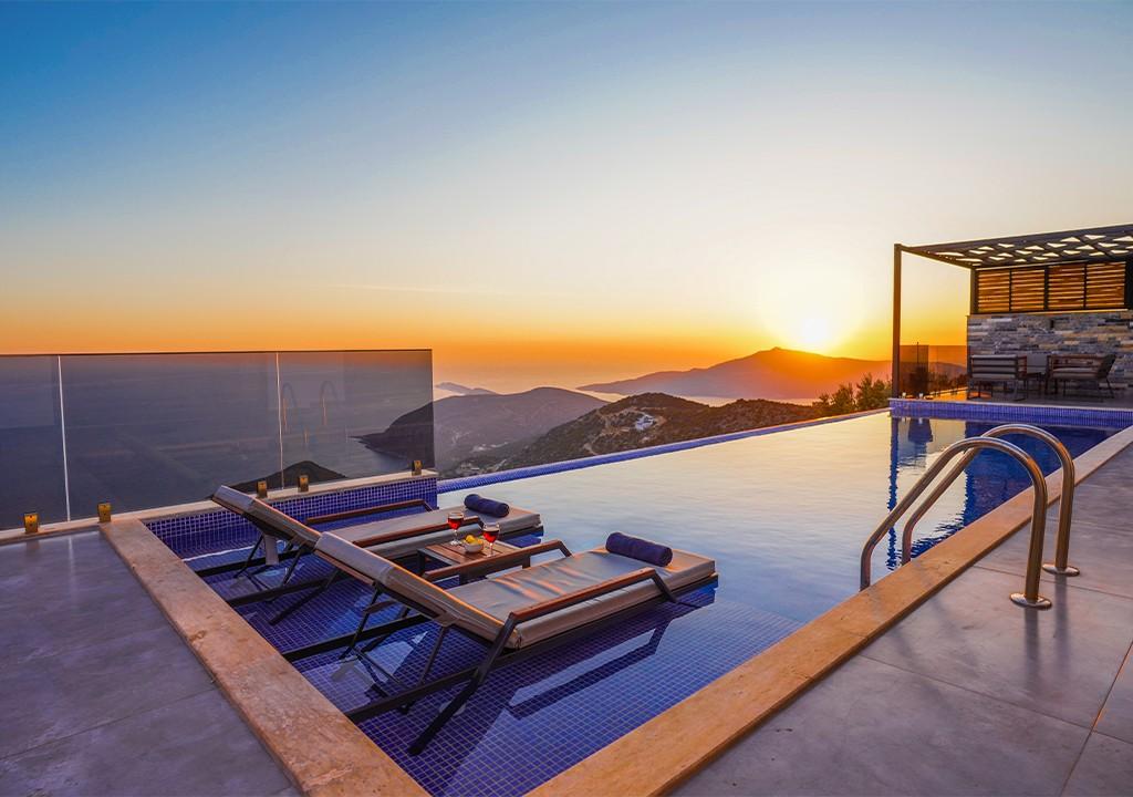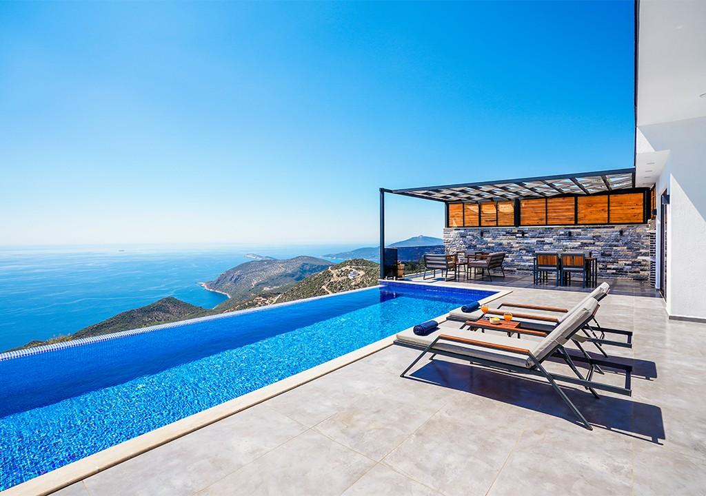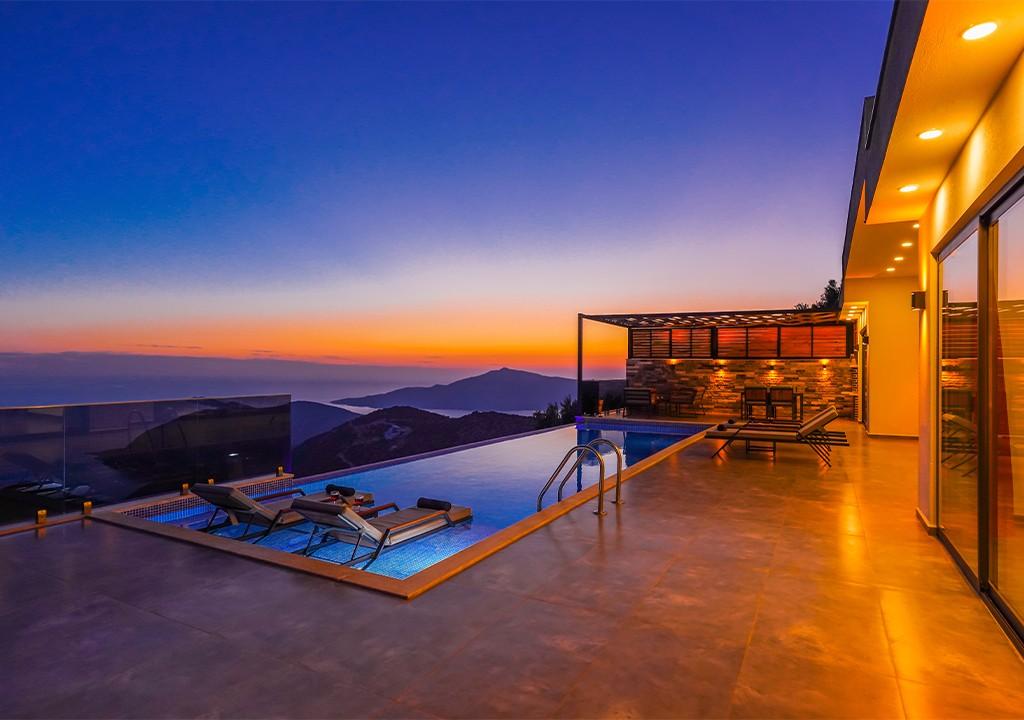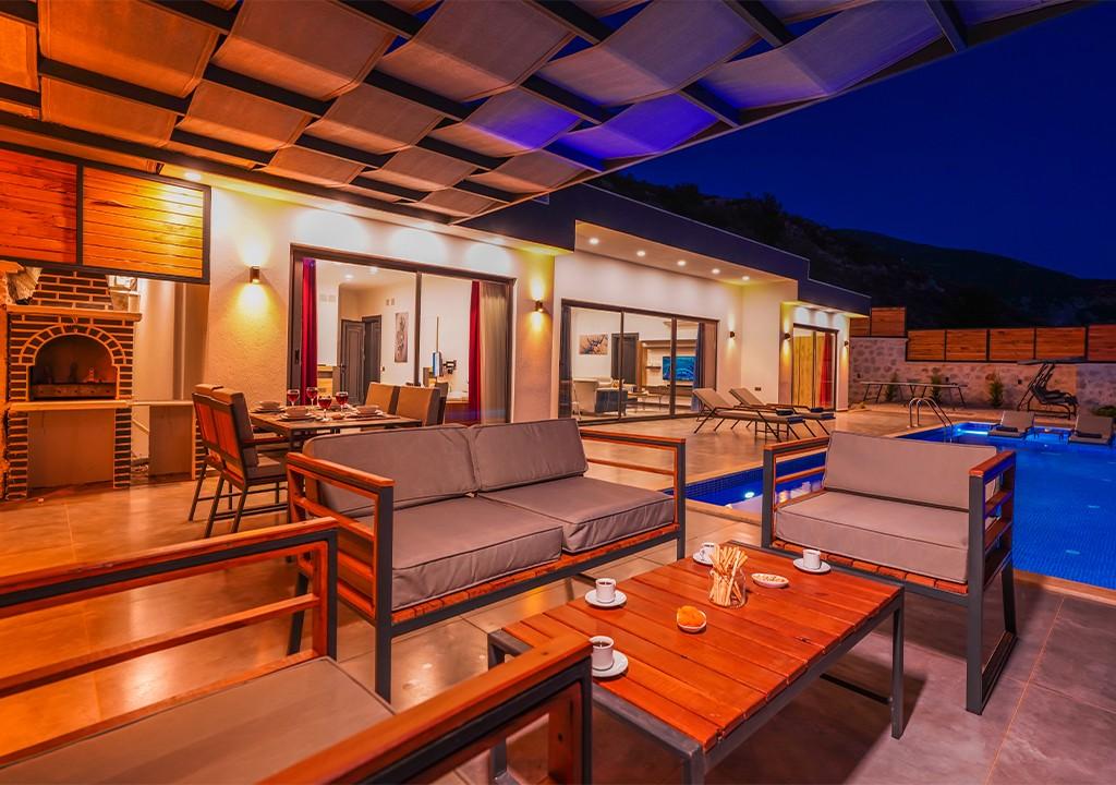 Kalkan'ın Ordu bölgesinde yer alan villa, muhteşem deniz ve doğa manzaralarıyla harika bir tatil fırsatı sunuyor. Bahçe ve havuz alanı gözlerden uzak olup, balayı çiftleri ve muhafazakar aileler için ideal bir seçimdir.
