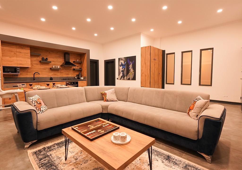 Mutfak: Modern Amerikan mutfağı. Buzdolabı, bulaşık makinesi, ankastre cihazlar, mikrodalga fırın, su ısıtıcısı, 4 kişilik yemek takımı ve gerekli tüm mutfak gereçleri mevcuttur.