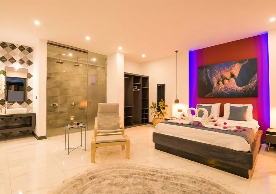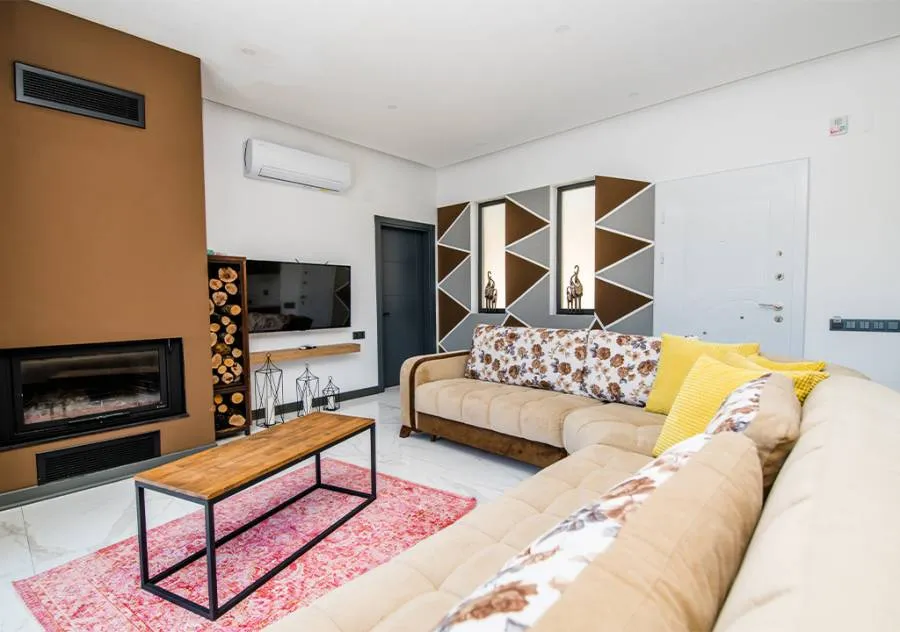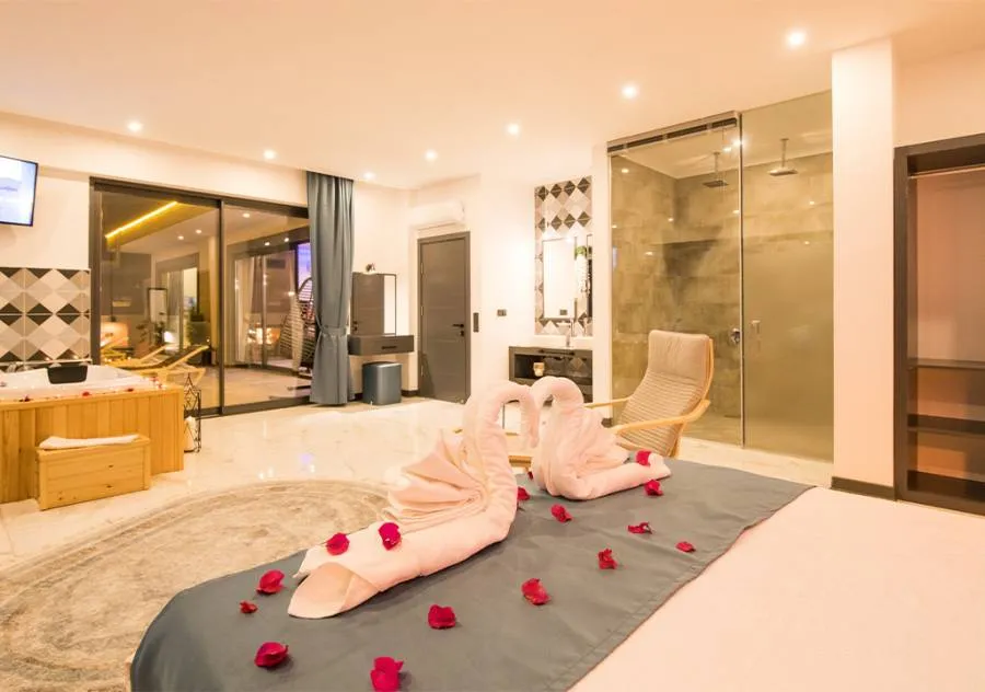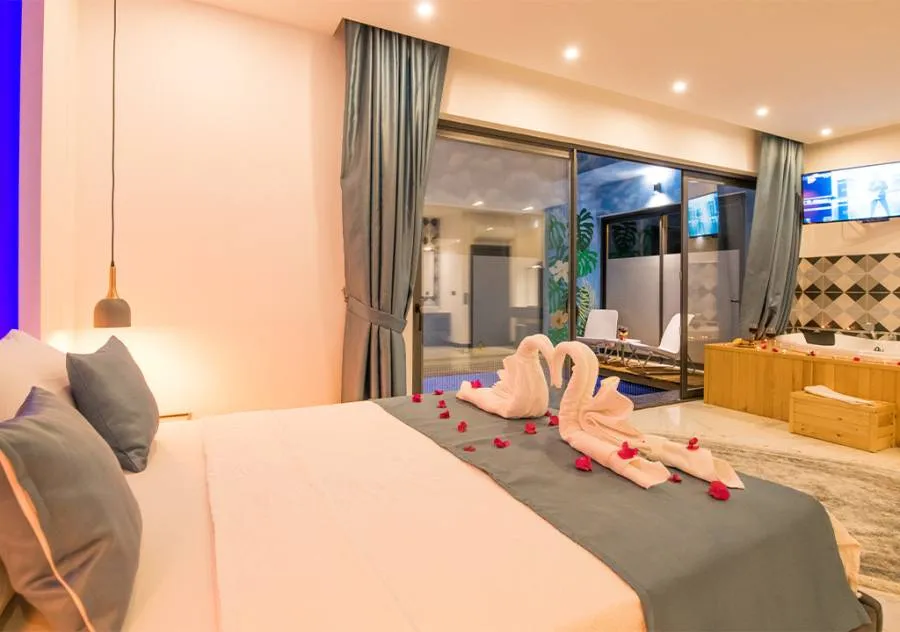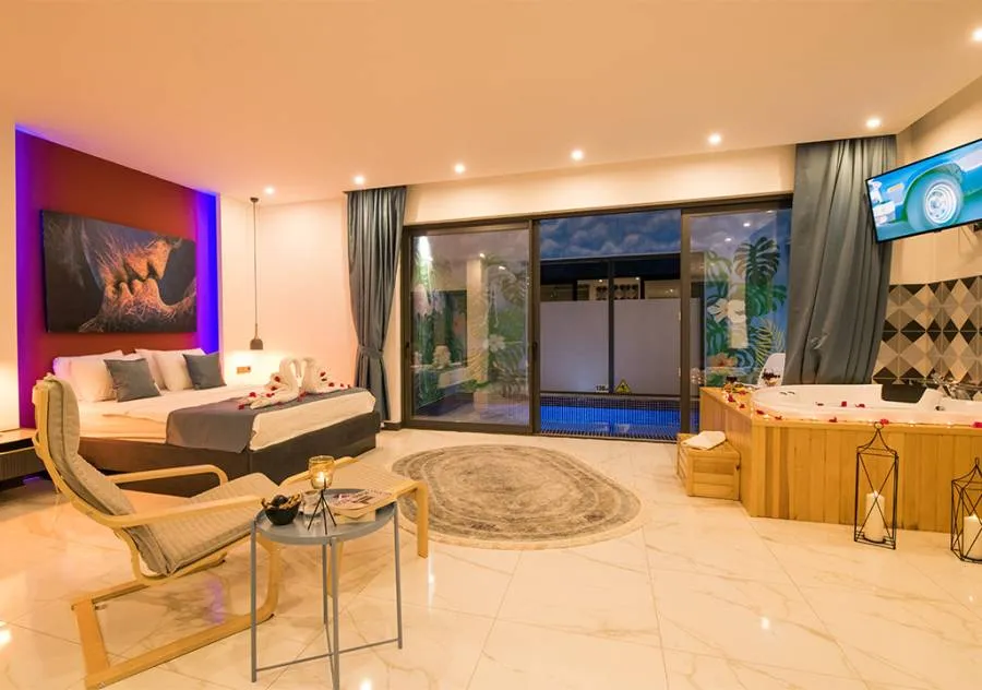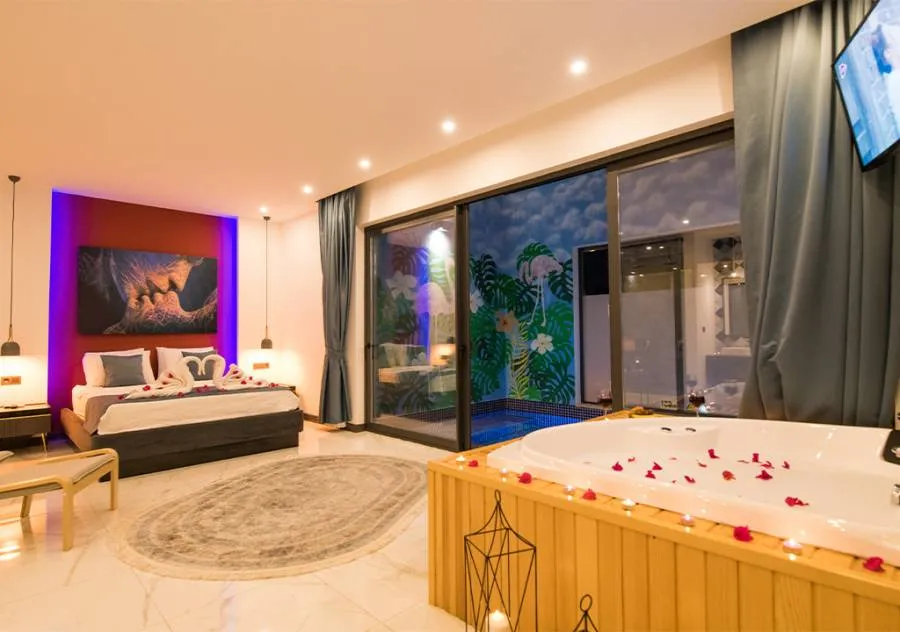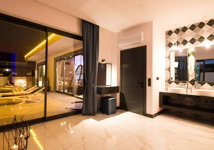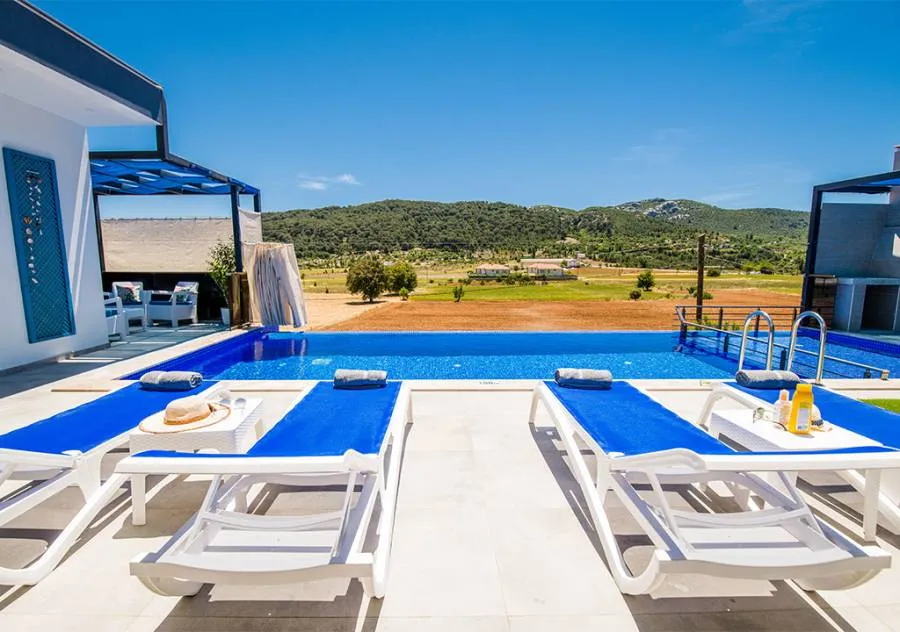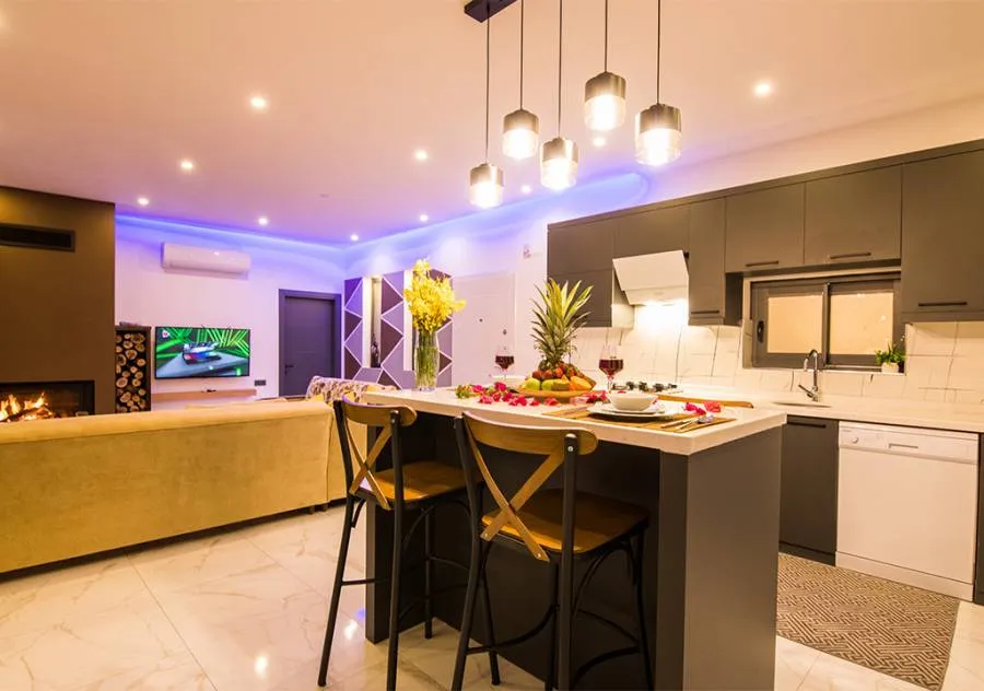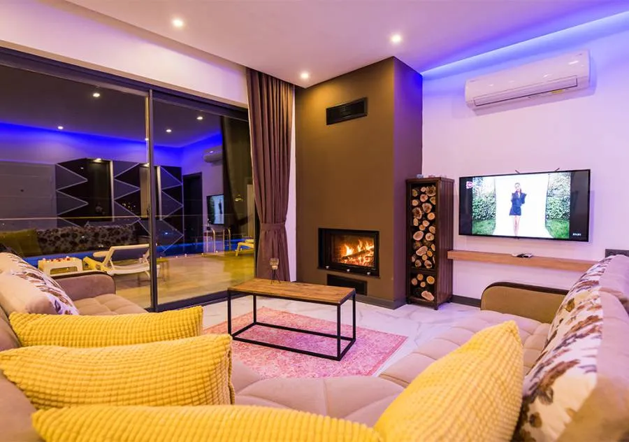 Located in Sarıbelen area of Kalkan, Villa is positioned amidst nature, offering a pool area that is not visible from the outside, making it an ideal choice for small families with its 2 bedrooms. With its indoor heated pool, it promises a delightful holiday for you and your family.