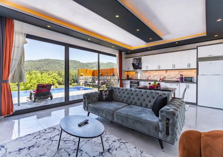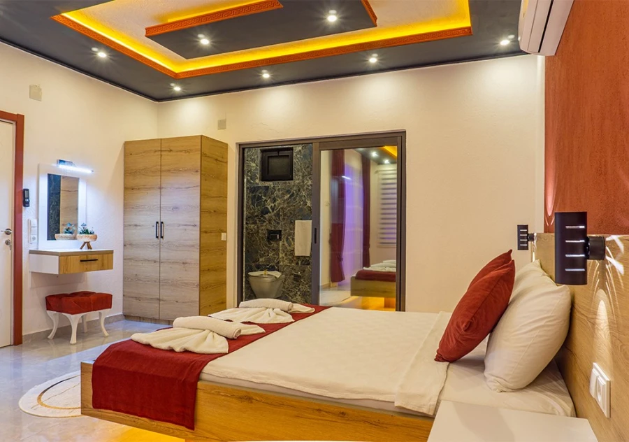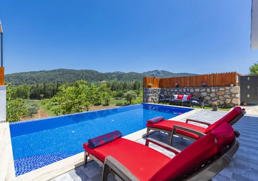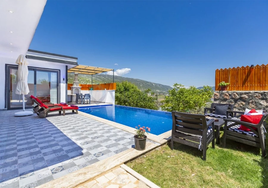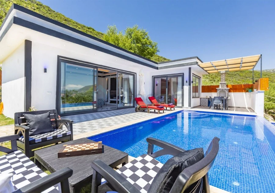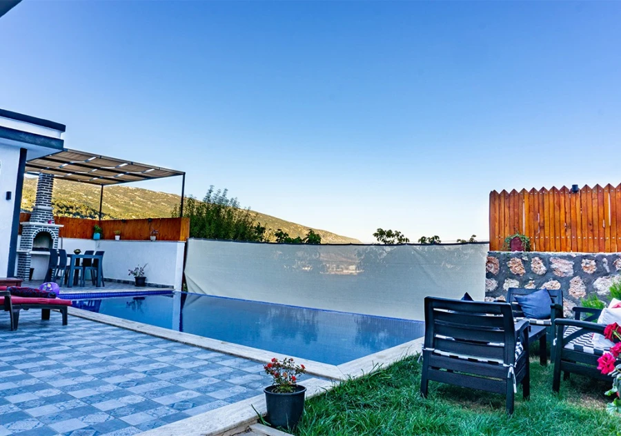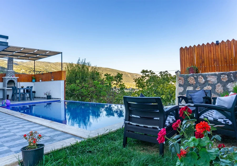 This villa is located in the village of Sarıbelen in Kalkan, promises a peaceful holiday away from the hustle and bustle of the city, surrounded by nature. It has a capacity for 2 people.
