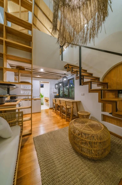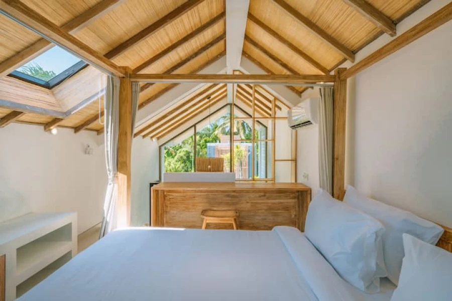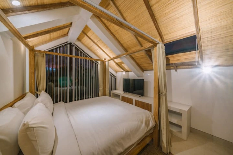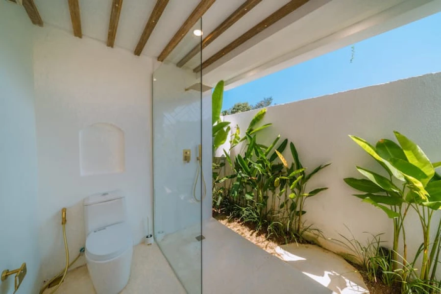 Üst kattaki yatak odasında konforlu bir king-size yatak ve Netflix'li akıllı TV bulunmaktadır; bu da keyifli akşamlar için idealdir. Lüks açık hava banyosunda bağımsız bir küvet bulunur, böylece açık gökyüzünün altında rahatlayabilirsiniz. Villa, sakin bir mahallede, güvenli bir kompleks içinde yer almaktadır. Salonda ücretsiz karşılama içeceği ikram edilmektedir!