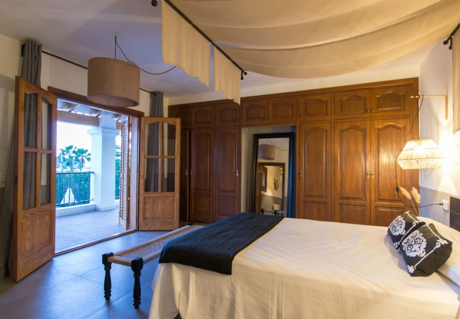 Orijinal İbiza tarzı göz önünde bulundurularak tasarlanan villada, her biri özel balkona sahip dört geniş çift kişilik yatak odası ve kendi banyosuna sahip bir ana süit bulunmaktadır. Her oda tamamen mobilyalıdır ve daha fazla mahremiyet için bağımsız olarak konumlandırılmıştır.