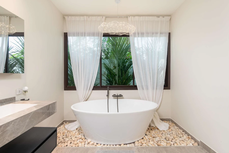 This villa is a stylish retreat blending modern elegance with tropical charm. Surrounded by lush greenery, this serene escape offers a private pool and open, airy spaces—perfect for relaxation and unwinding in paradise.Check-out Time:12:00