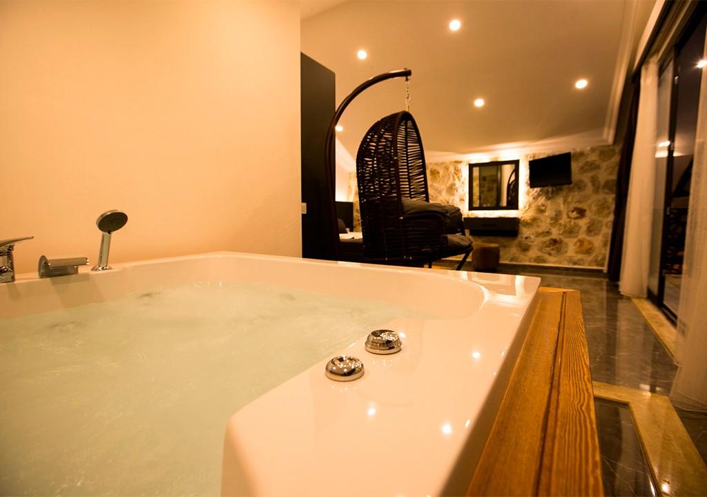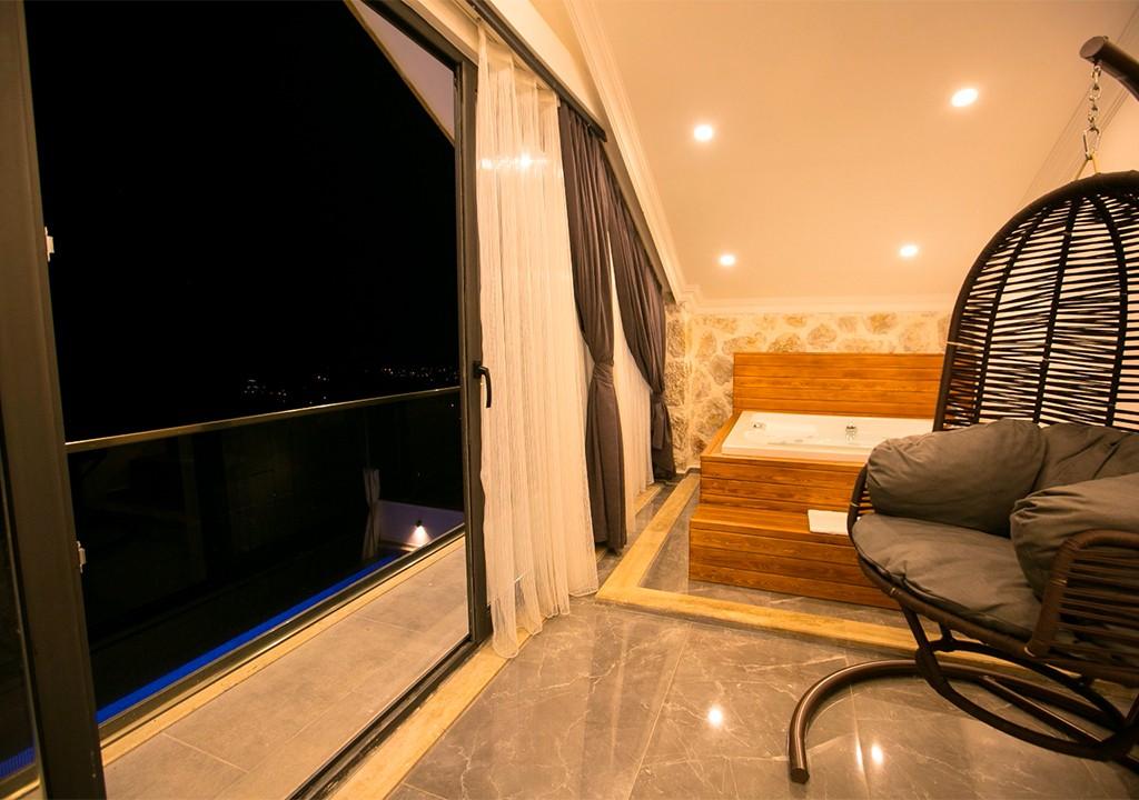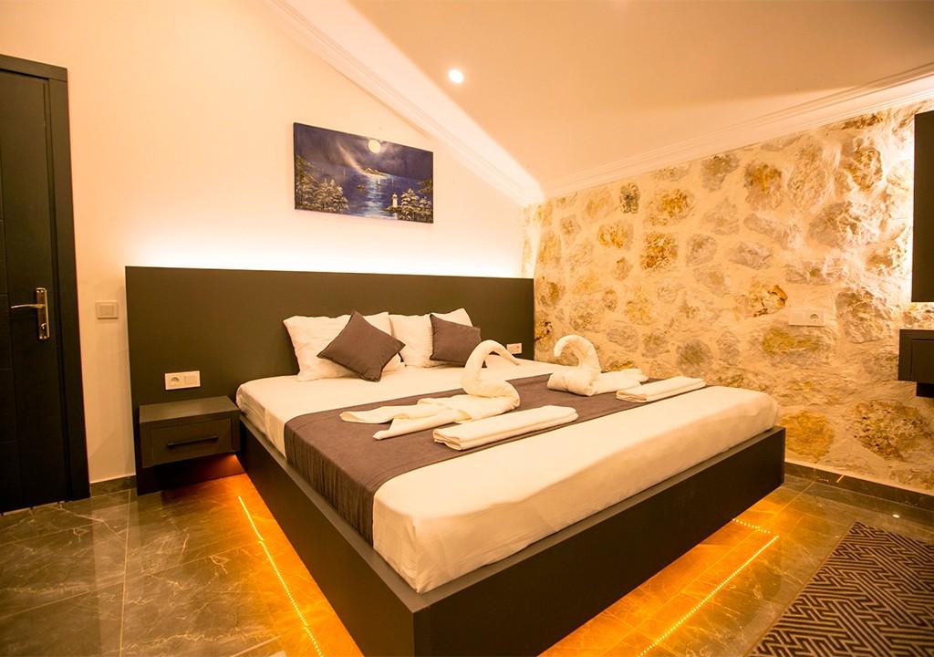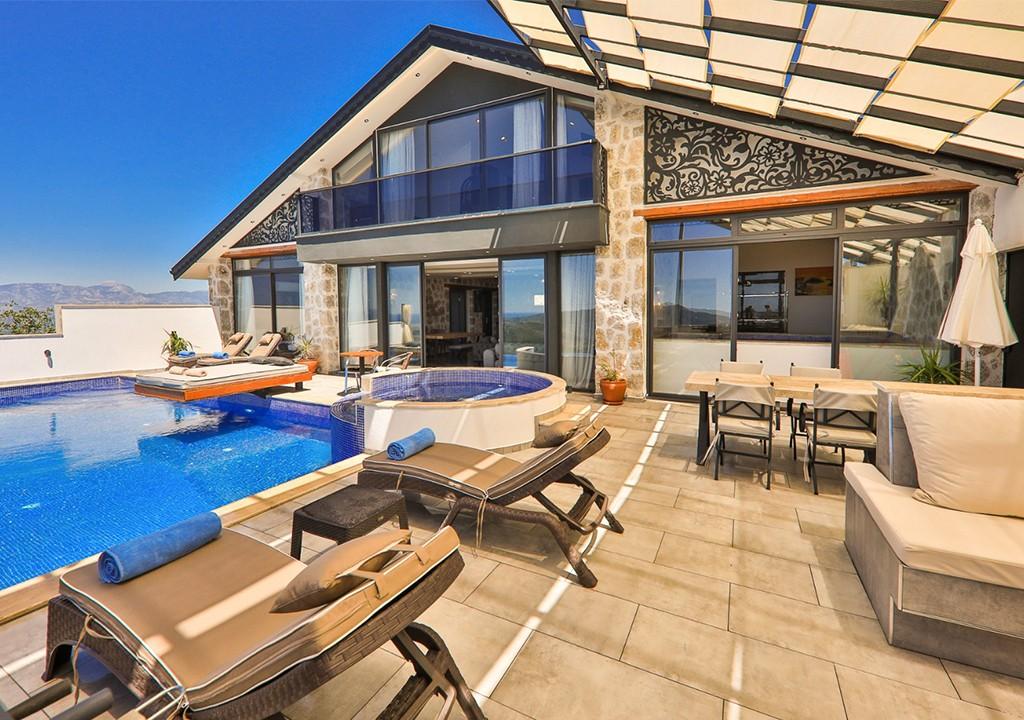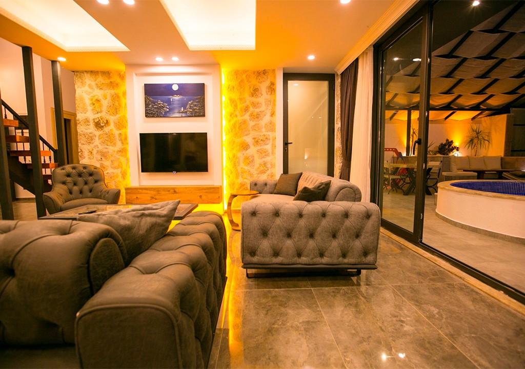 Villa, located in the village of Üzümlü in Kalkan, is a conservative villa with 2 bedrooms, blending with nature. Villa features a Children's Pool, a Wooden Sauna, and a Heated Indoor Jacuzzi Pool.