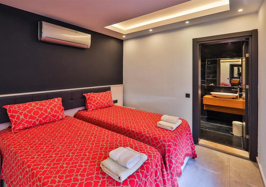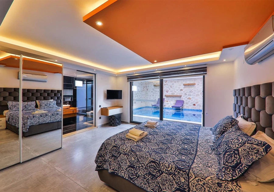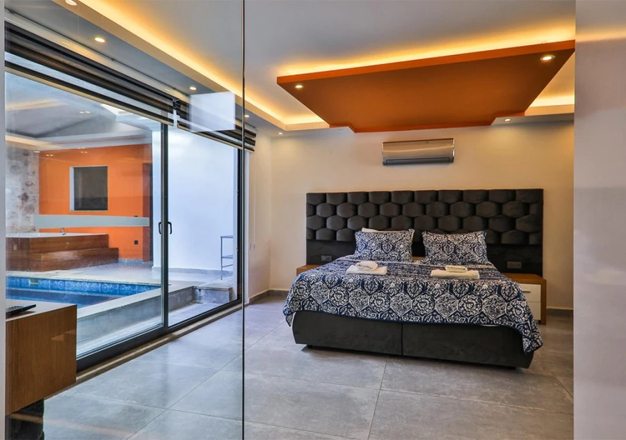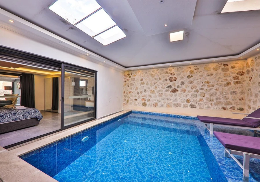 In the village of Islamlar in Kalkan, Villa is nestled amidst nature, offering a tranquil retreat with its two bedrooms and a capacity for four people. With its indoor heated pool, Villa promises a delightful holiday experience for you and your family.