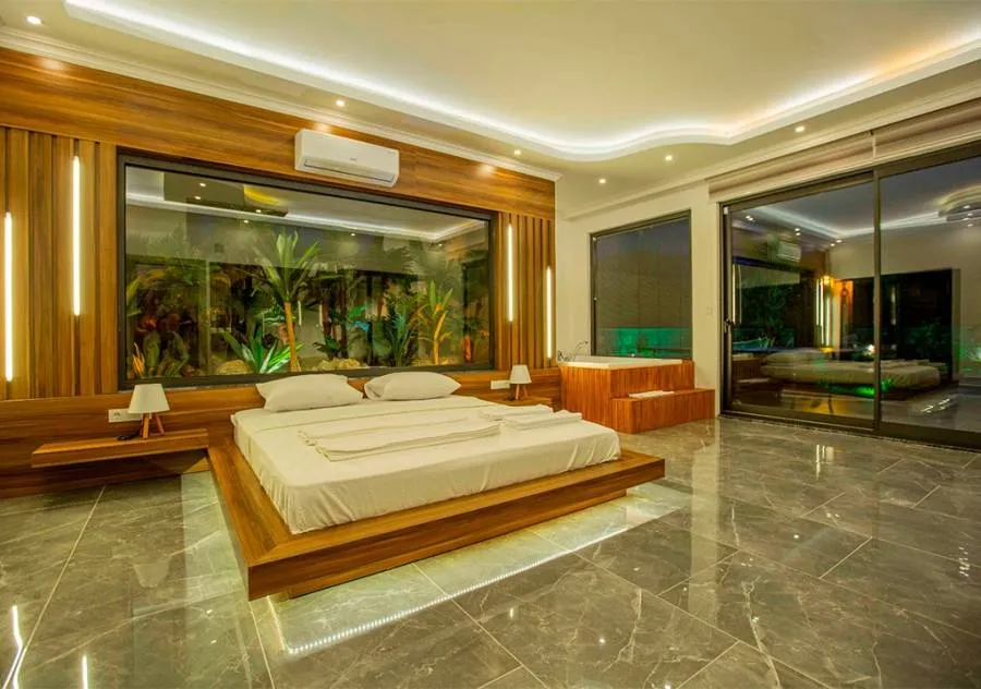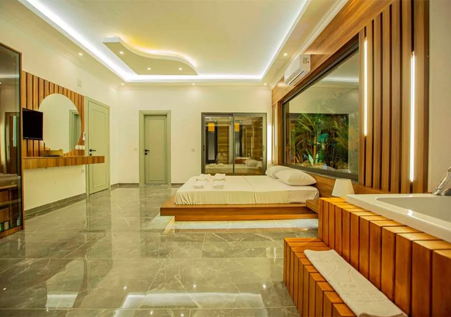 The pool area of our villa, which cannot be seen from the outside, is specially designed for honeymooners and conservative families.