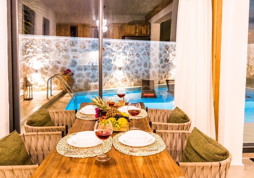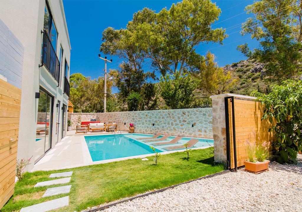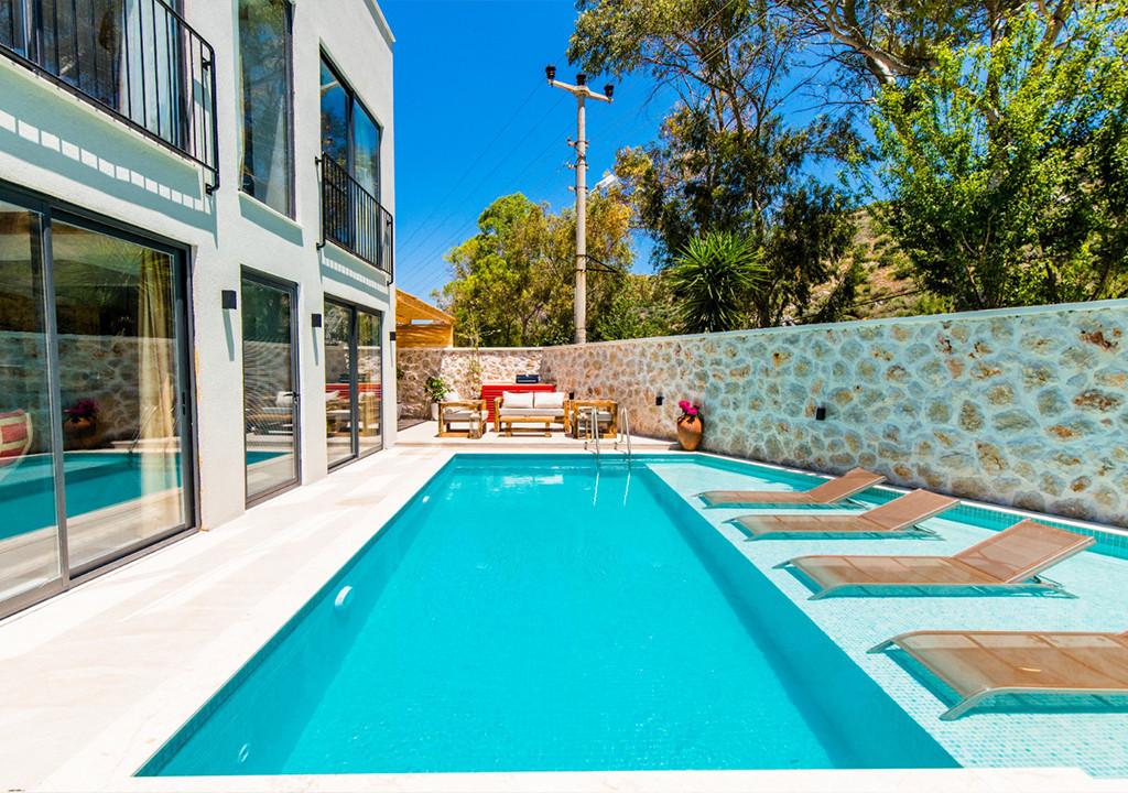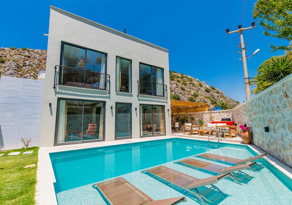 Villa located in the Patara region of Kalkan, is one of the most suitable choices for honeymoon couples and nuclear families. The garden and pool area are discreetly shielded from outside view, making it a conservative villa.