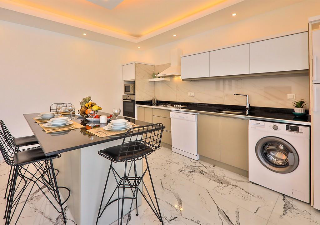 Kitchen: Modern American kitchen. Refrigerator, Dishwasher, Oven with 4-burner stove (built-in), Microwave oven, Electric kettle, Water dispenser, 4-person dinner set, Pan, Pots, Cutlery, etc.