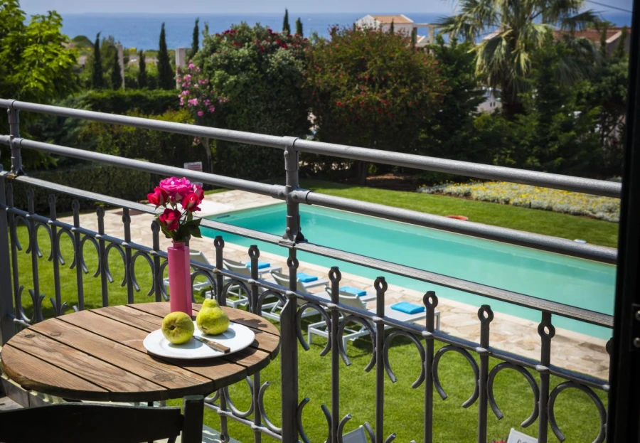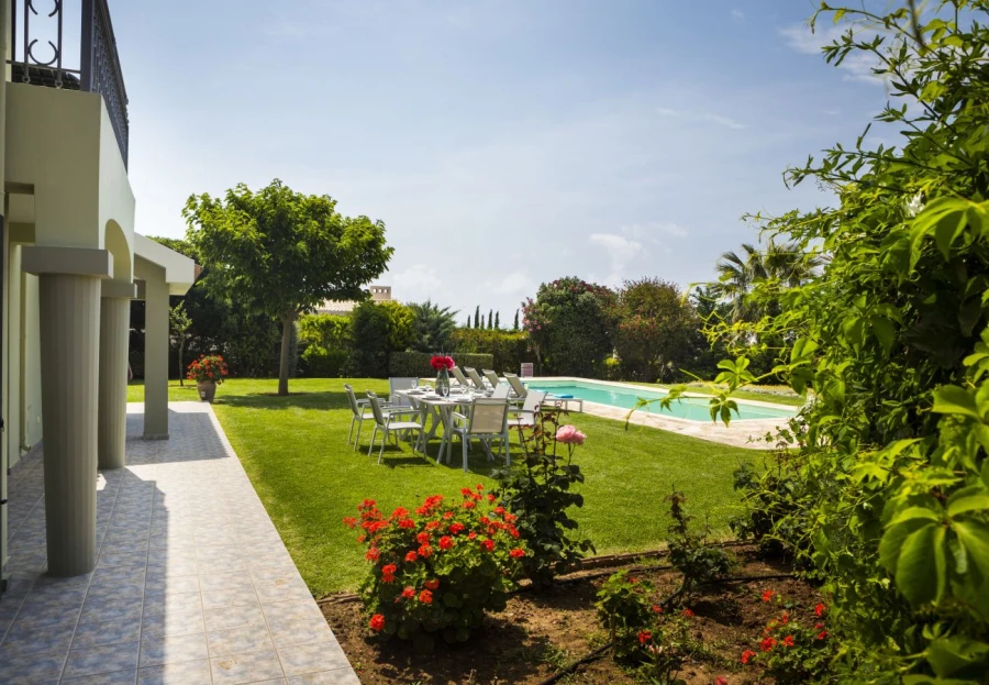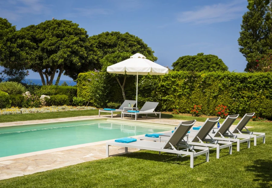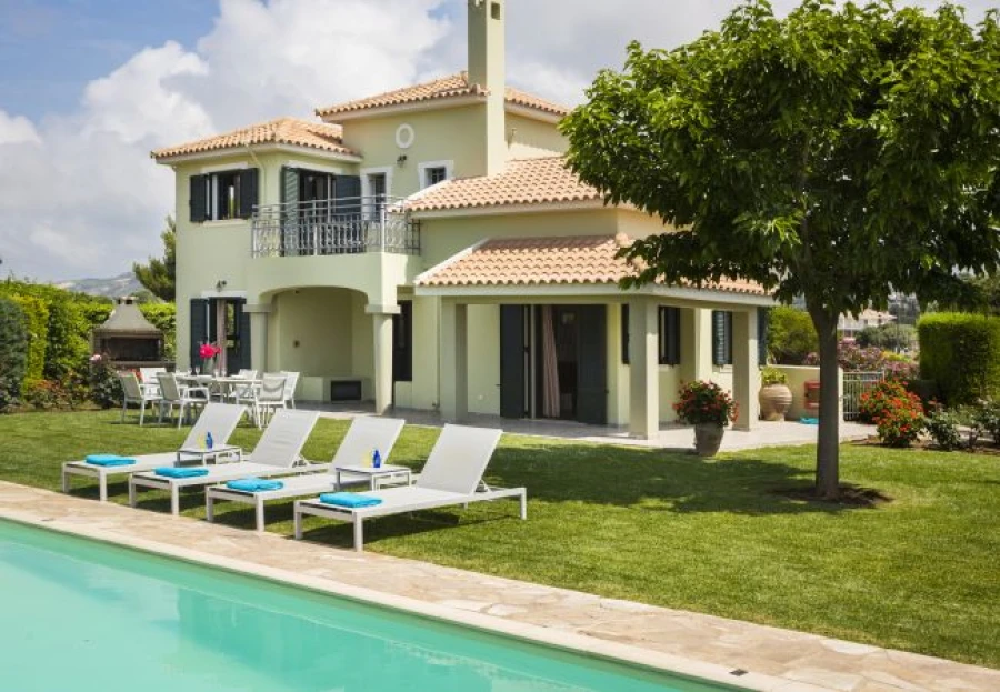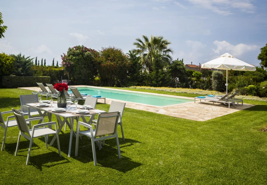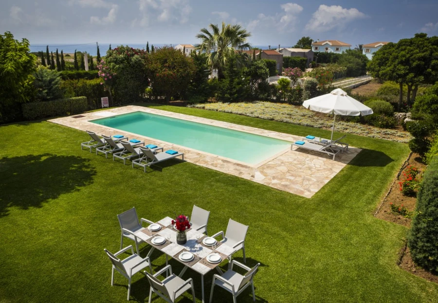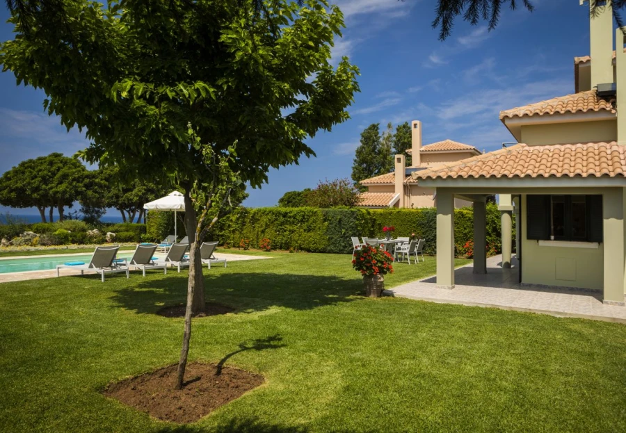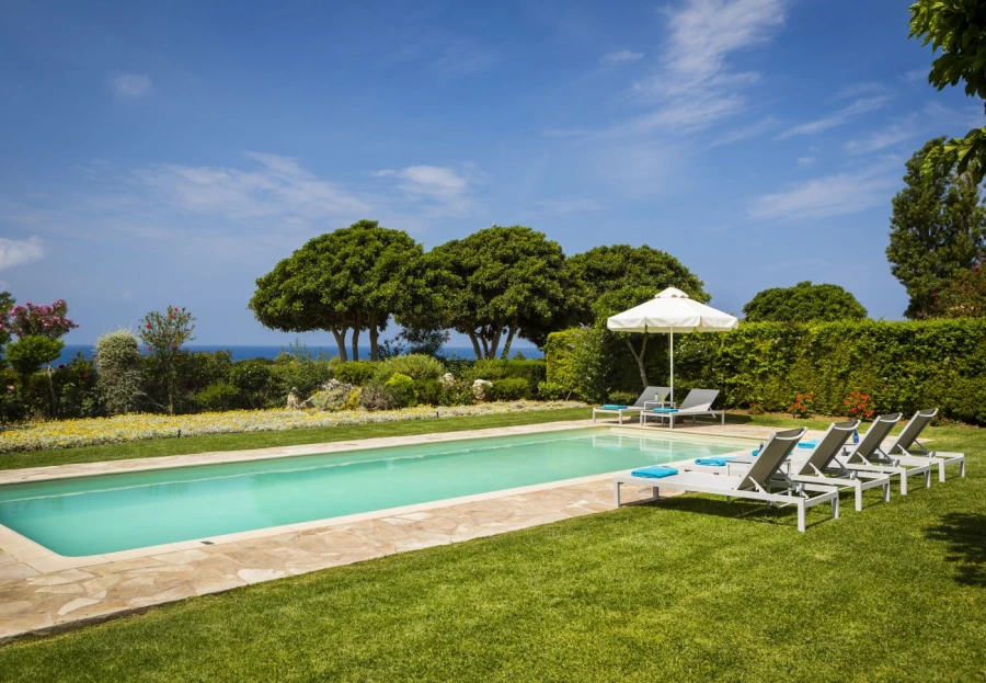 This villa is a contemporary villa with countryside and sea views, surrounded by lush gardens and a large pool. Within walking distance, you'll find tavernas, mini-markets, and sandy beaches. Some local amenities may have limited hours in the off-season.Some local amenities may have limited hours in the off-season.