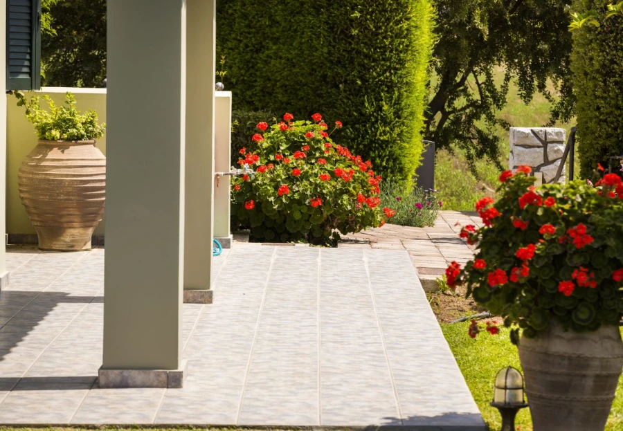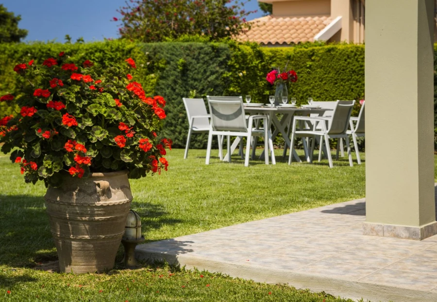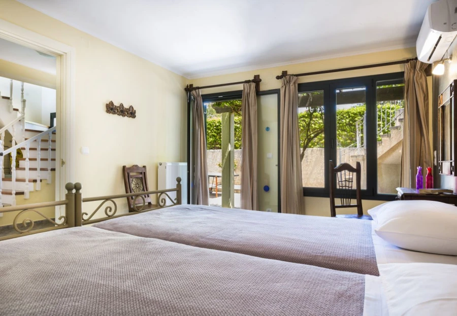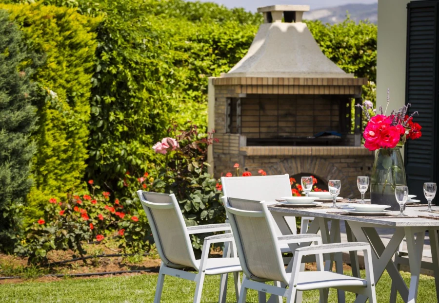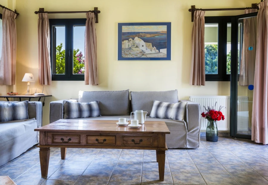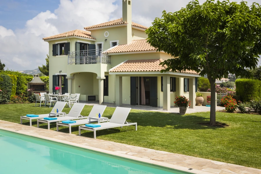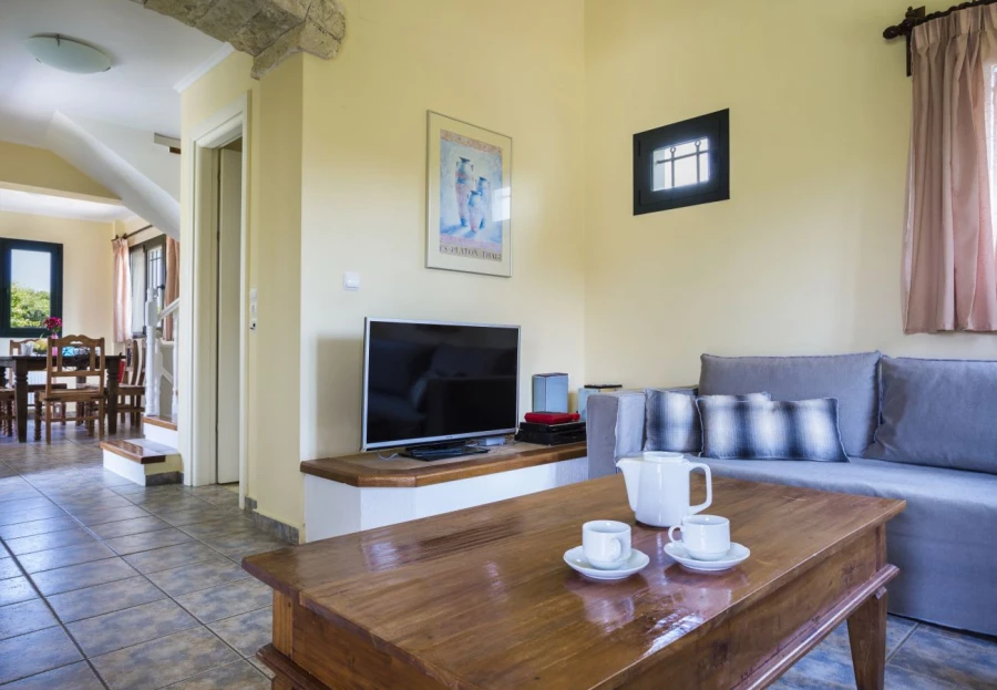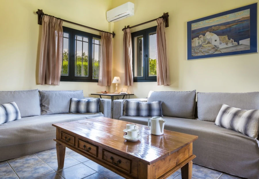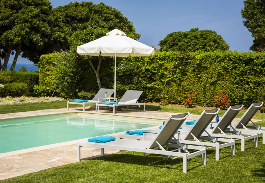 This villa is a contemporary villa with countryside and sea views, surrounded by lush gardens and a large pool. Within walking distance, you'll find tavernas, mini-markets, and sandy beaches. Some local amenities may have limited hours in the off-season.Some local amenities may have limited hours in the off-season.