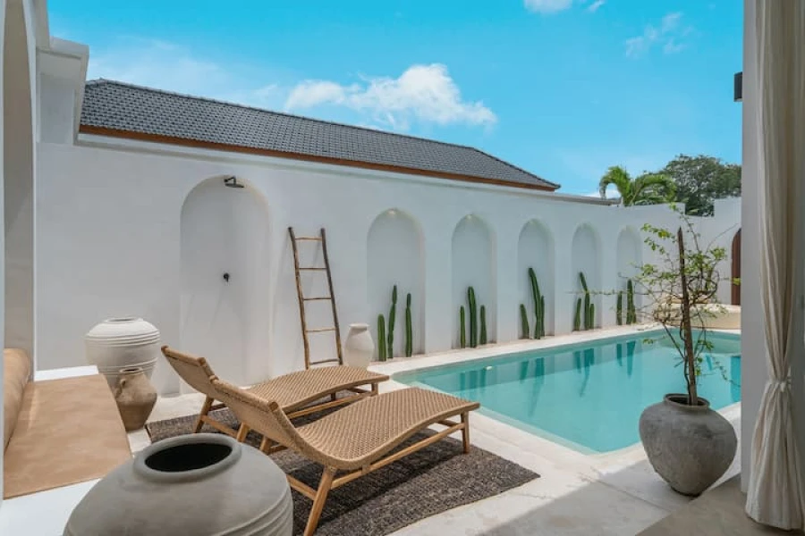 This villa is a peaceful 2-bedroom retreat just 100 meters away from Seseh Beach. İt offers a central location with beach access, stylish interiors and modern amenities, private pool and serene outdoor spaces