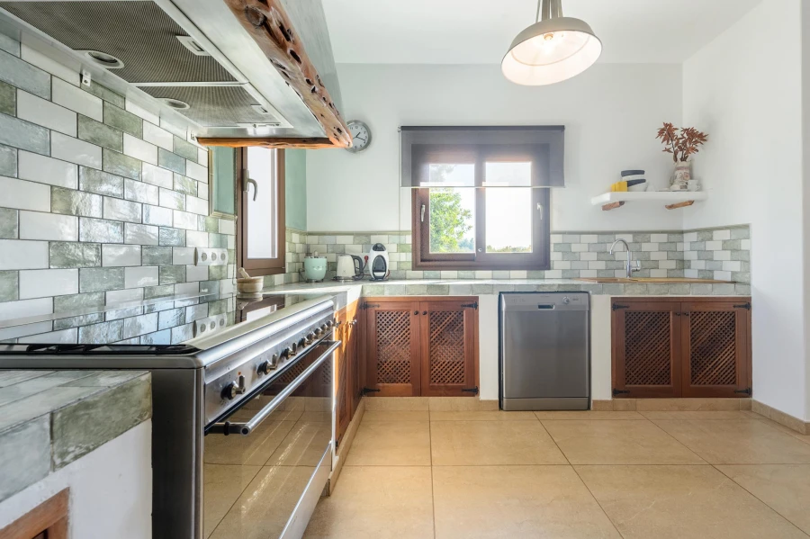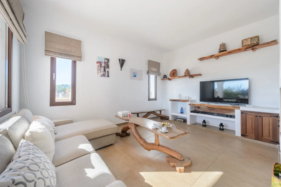 This newly built villa features a sleek minimalist design with a bright and airy atmosphere where white takes center stage. Spacious and full of natural light, it offers ultimate comfort with 4 double bedrooms, a fully equipped kitchen, a stylish living room, 2 bathrooms, and a guest toilet.