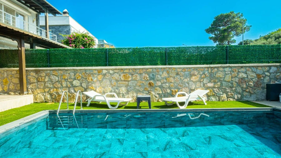 Note: This villa is particularly preferred for its proximity to Bodrum city center, shopping malls, and restaurants. The distance to Gümbet Beach is 2.6 km, while Bitez Beach is 4.4 km away.