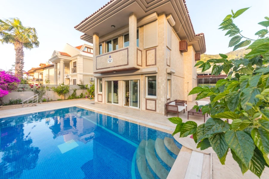 This villa offers ideal accommodation for large families in the Icmeler region of Marmaris. With its capacity of 8 people, our villa appeals to large families or groups of friends and is within walking distance of corporate markets and Icmeler beach. It provides a comfortable and enjoyable holiday with its private pool and large garden. Our villa has 3 floors, 4 bedrooms and 3 bathrooms.