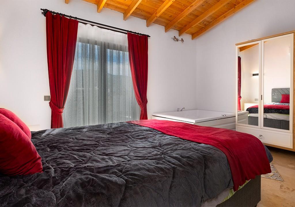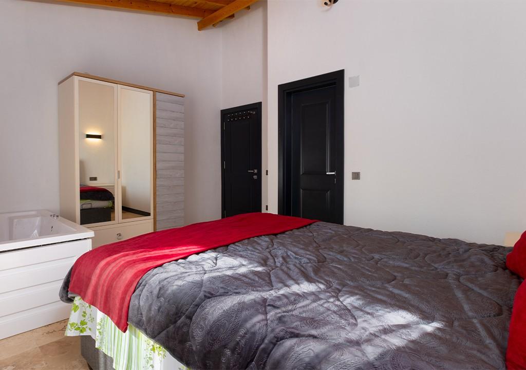 Double bed, bedside table, air conditioning, wardrobe, Jacuzzi, bathroom and toilet.