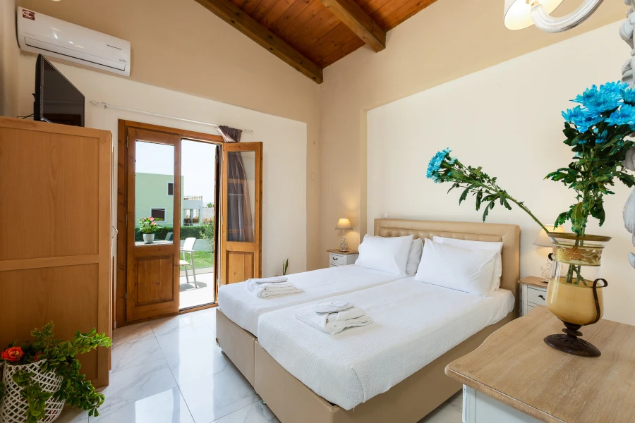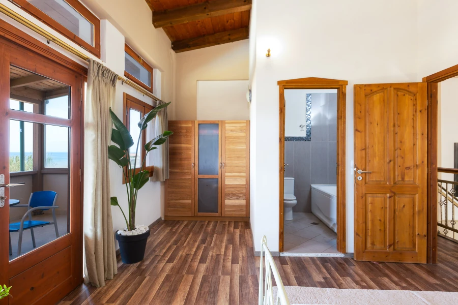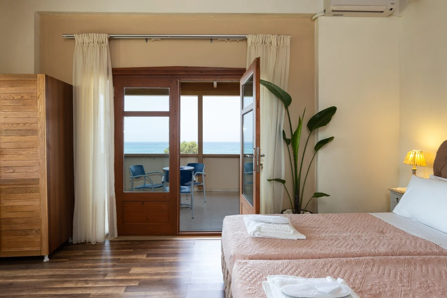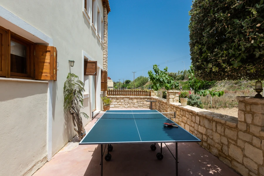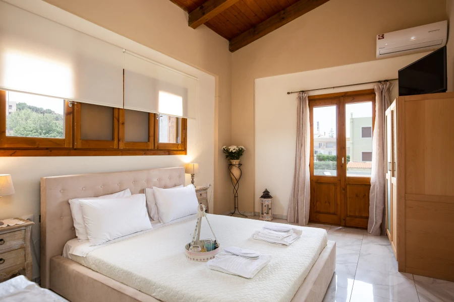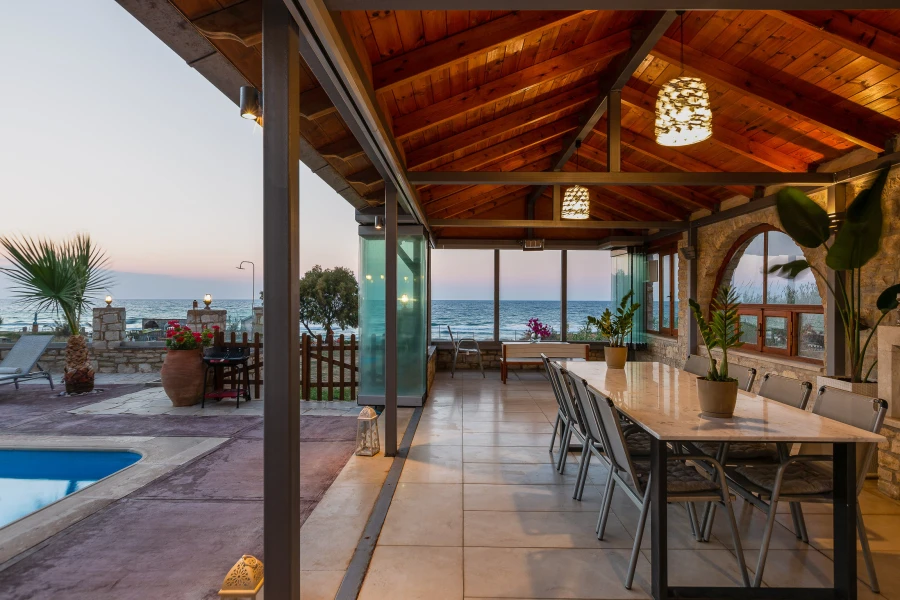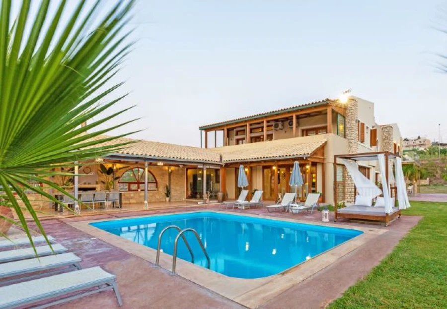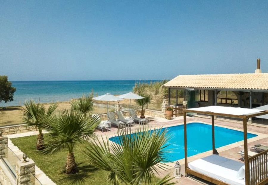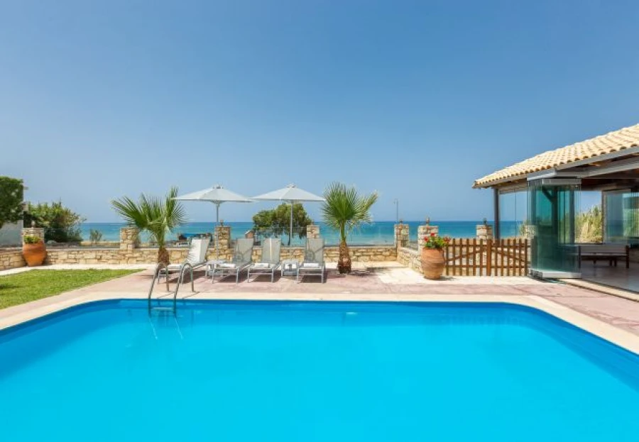 This villa is a stunning six-bedroom retreat just 10 km east of Rethymno, literally steps from the shoreline and within easy stroll of tavernas and shops. This recently restored 400 m² home combines modern luxury with sweeping sea vistas and direct beach access for an unforgettable Cretan escape.A soaring foyer with high ceilings welcomes you into the villa’s elegant living spaces.Unwind on the sleek sofa before the TV, then gather at the adjacent dining table.The open-plan kitchen boasts top-of-the-line appliances and opens onto a shaded patio—ideal for morning coffee or evening cocktails.Two air-conditioned rooms—one double, one twin (convertible to double)—each with an en-suite shower and WC.Bedrooms (Upper Floor): Four more AC’d suites, including a master with jacuzzi bath, plus one double and two twins—all with private balconies overlooking golden sands.Private Pool (40 m²): Surrounded by loungers, umbrellas, and a covered seating area—perfect for sunbathing or sunset drinks.BBQ & Fireplace: A built-in grill and hearth create an inviting spot for alfresco feasts.Family-Friendly Grounds: The fully fenced 800 m² garden offers safe play space for children—no car needed.