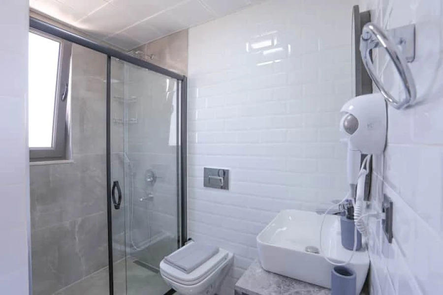 Spread across two floors, Villa features three beautifully designed bedrooms. Two master bedrooms come with double beds, en-suite bathrooms, and air conditioning, while the third bedroom offers two single beds and air conditioning—ideal for families or groups. The open-plan living area includes a fully equipped kitchen, a cozy lounge with a TV, air conditioning, and a shared bathroom.