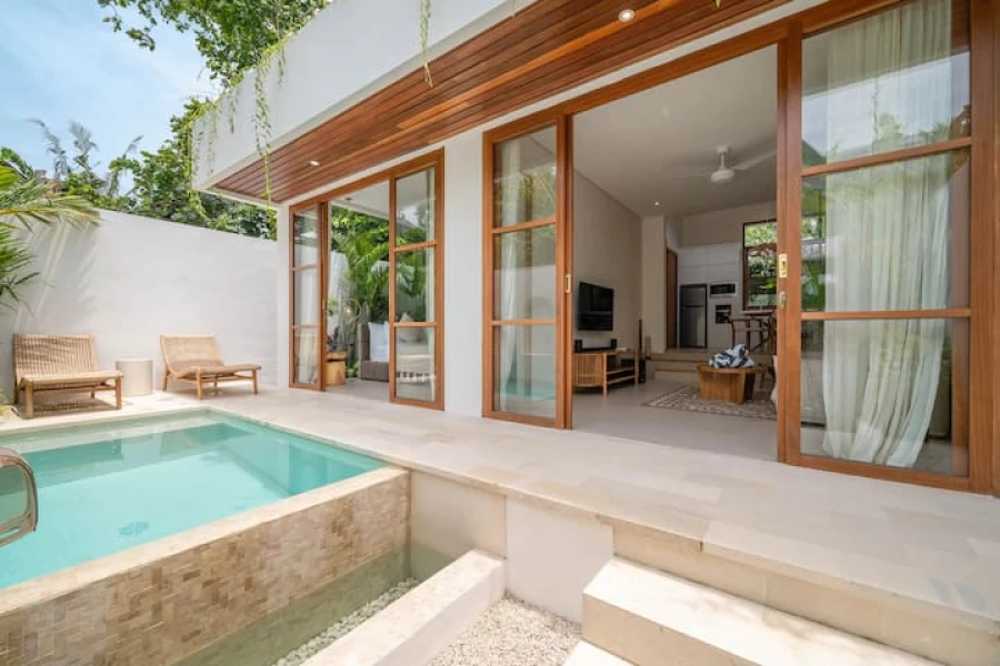 Discover the luxury getaway, a stunning retreat nestled in the exclusive villa complex in Canggu. This modern haven is just moments from the beach, offering stylish design, high-quality finishes, and complete amenities for a relaxing stay. The villa offers central location near top cafes, restaurants, and the beach, modern design with luxurious interiors, fully equipped, with dedicated staff to ensure a seamless experience.