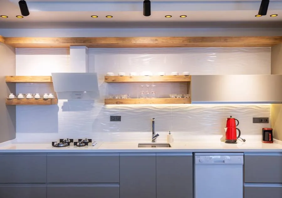 Refrigerator, dishwasher, built-in appliances, microwave oven, kettle, 4-person dining set, and all kitchen utensils are provided.