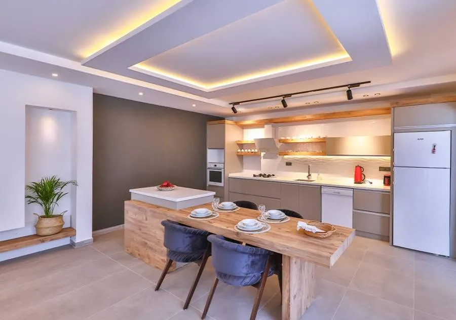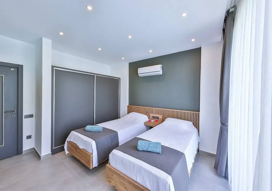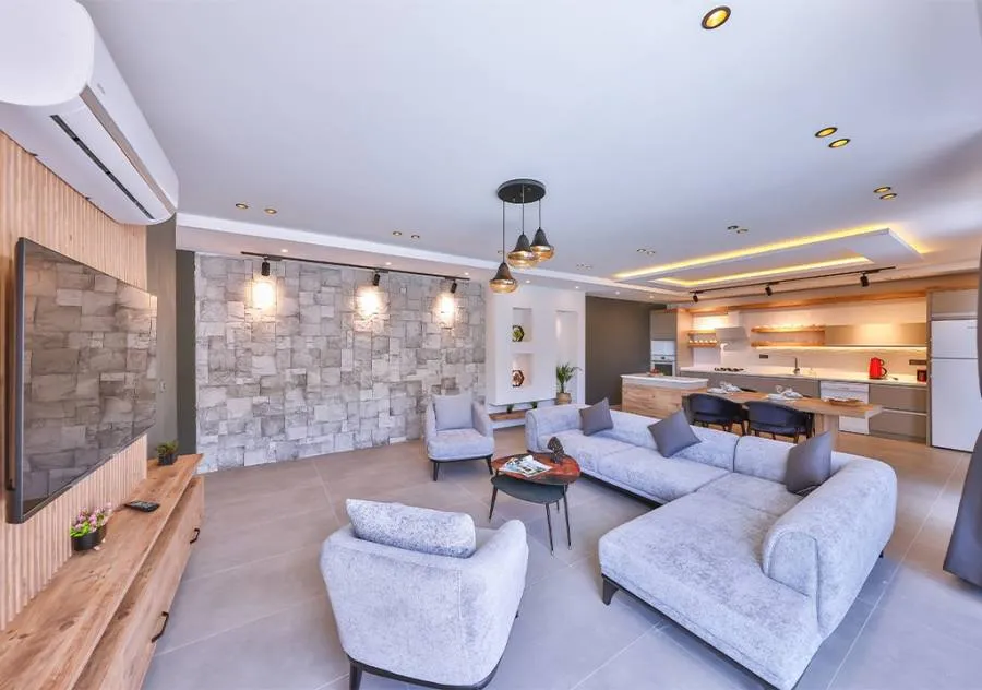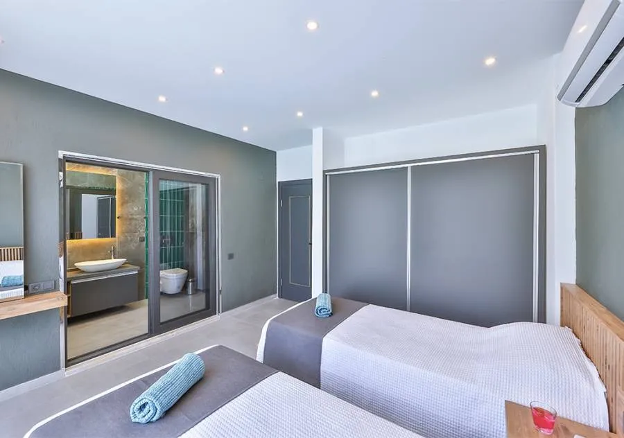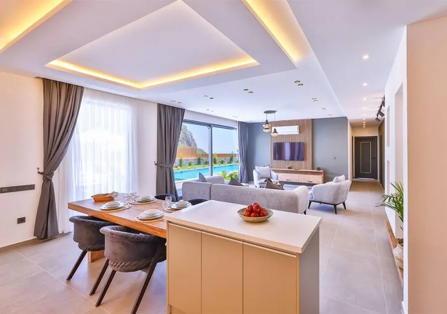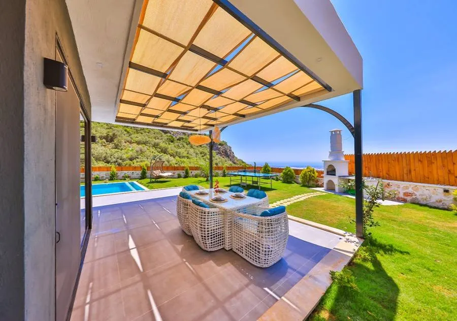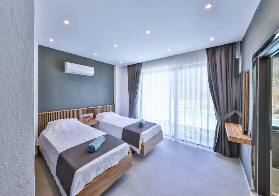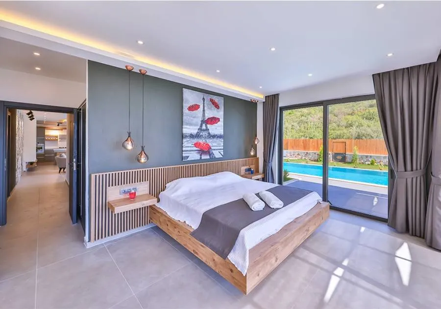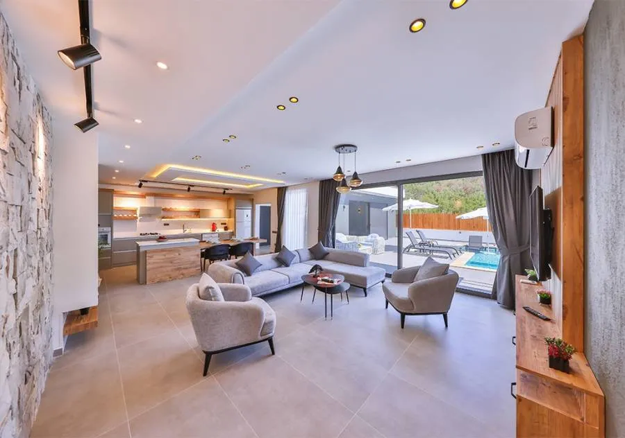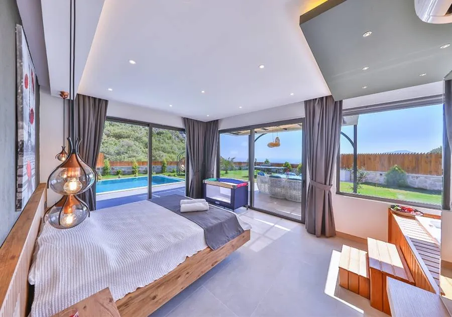 Villa, located in the Çavdır region of Kalkan, has 2 bedrooms and a capacity for 4 people. Its secluded location amidst nature, indoor heated pool, and sauna make it an ideal choice for conservative families.