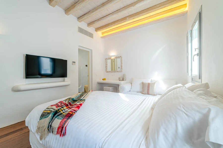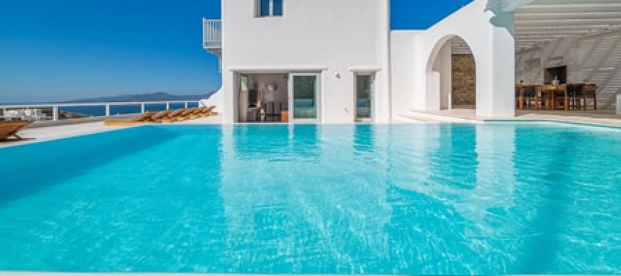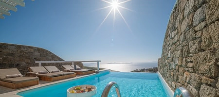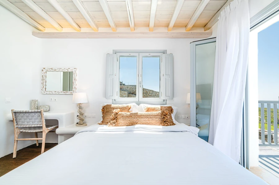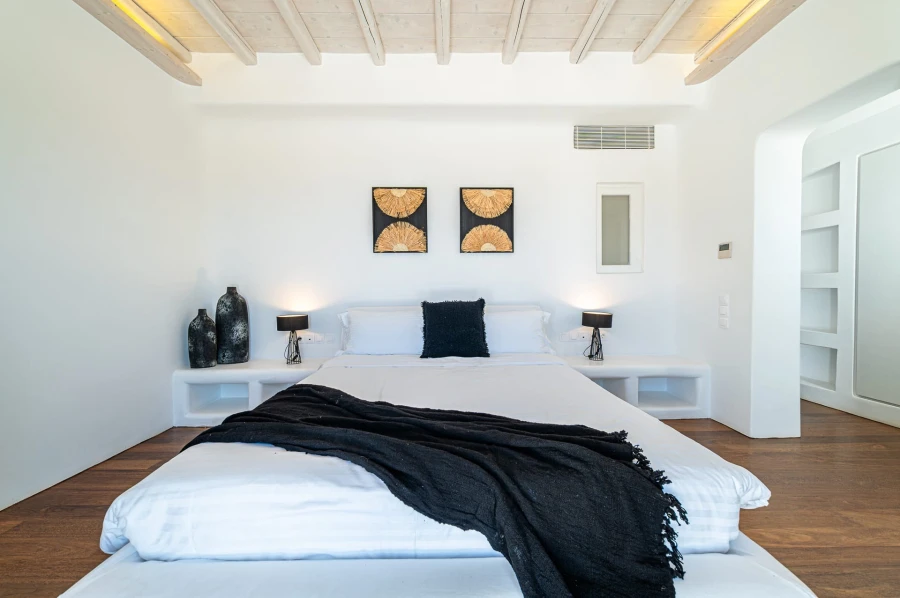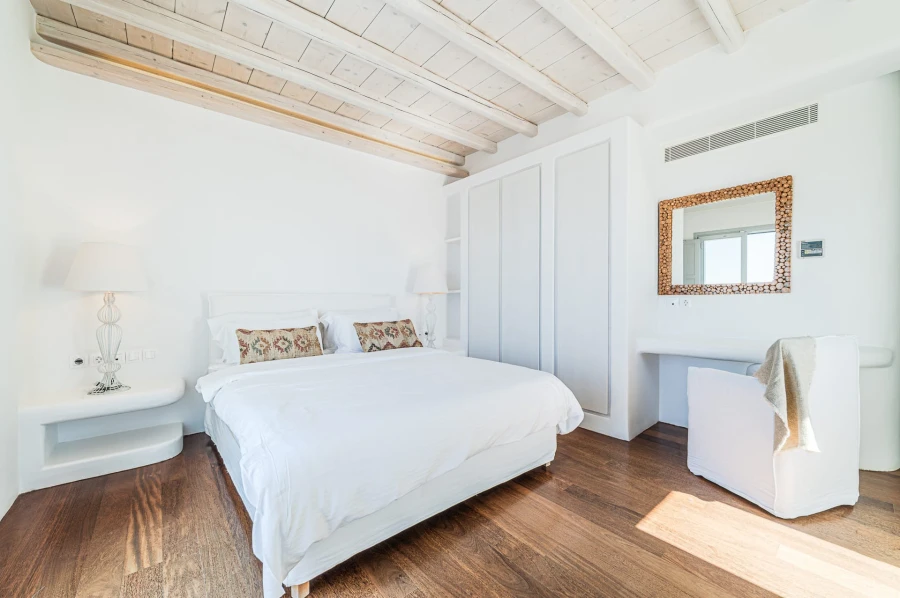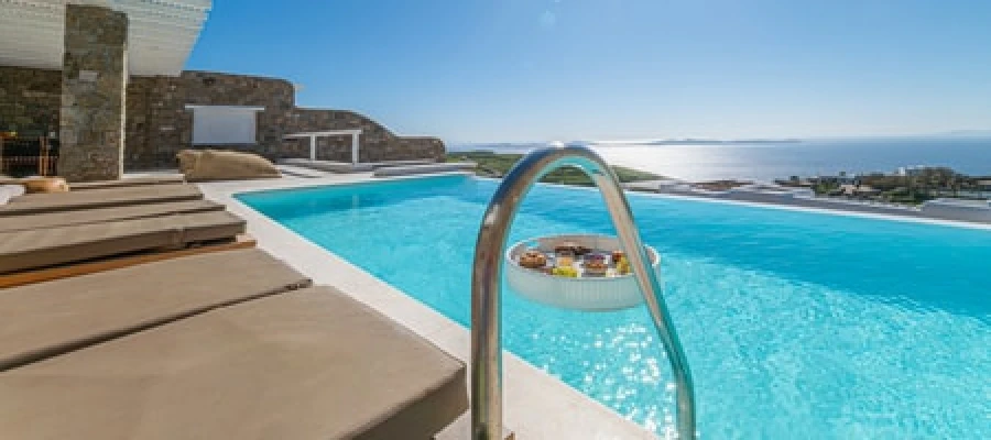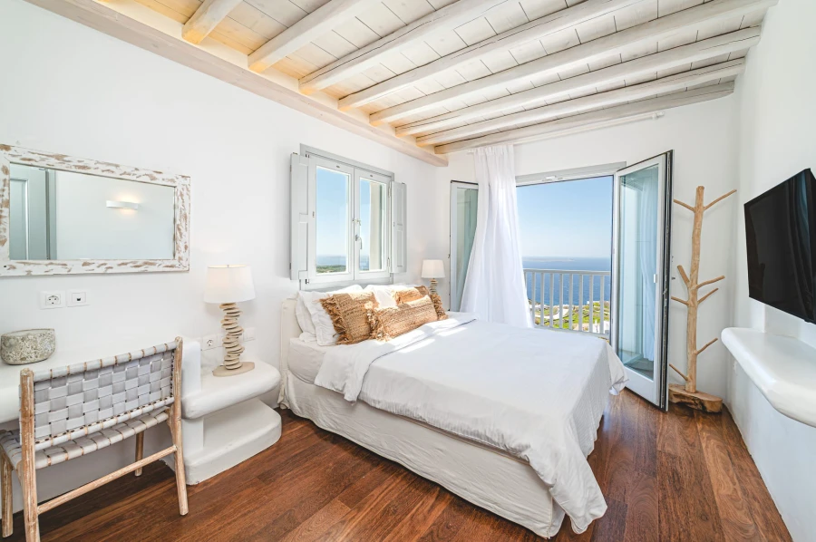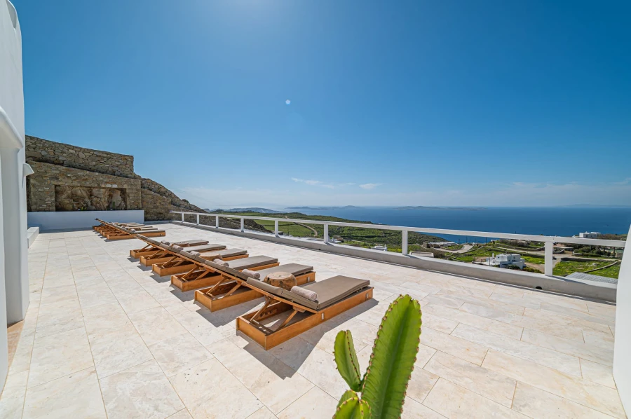 Blending traditional Cycladic architecture with sleek, modern design, the villa offers a refined atmosphere both indoors and out. The highlight is a 50 m² infinity pool that seems to melt into the horizon, offering front-row seats to breathtaking sunsets.