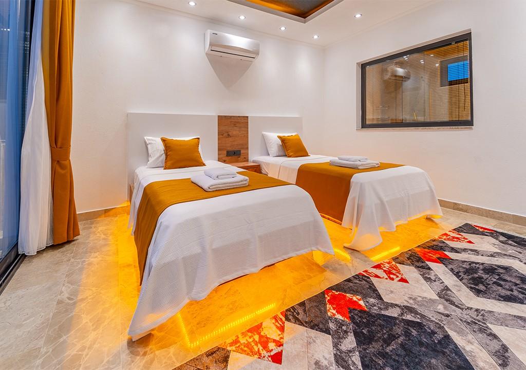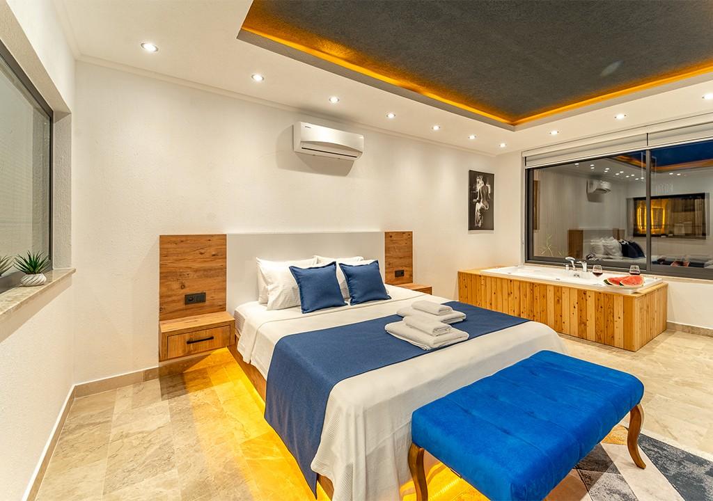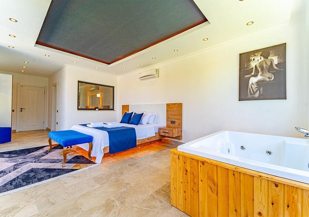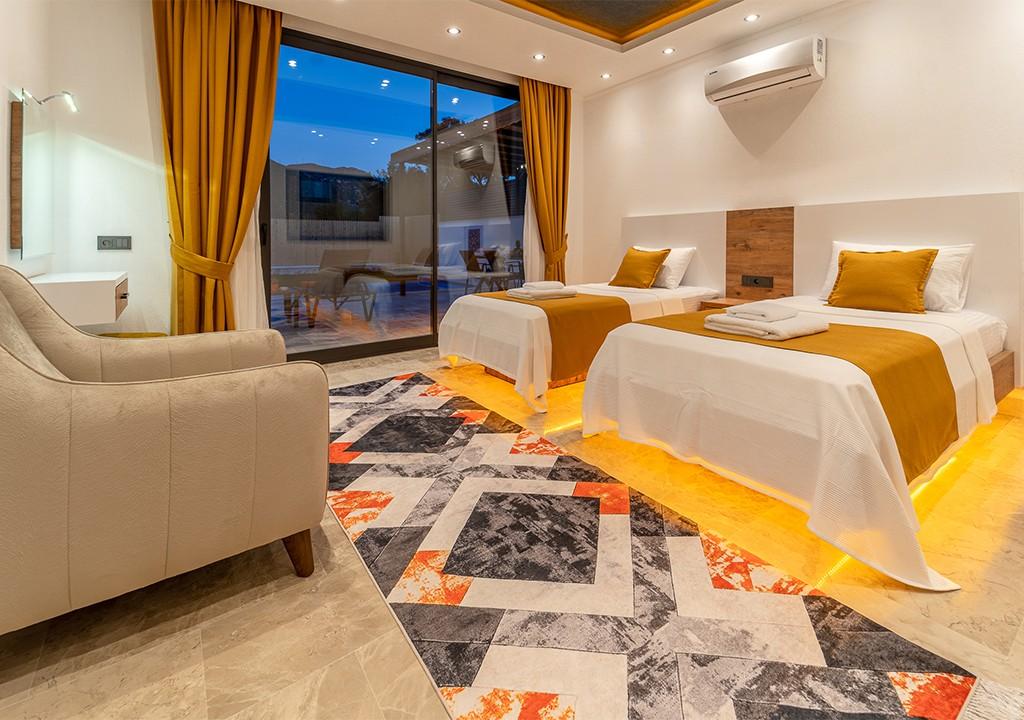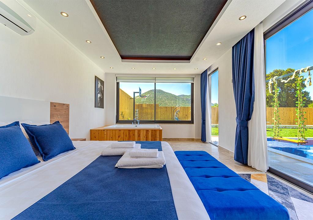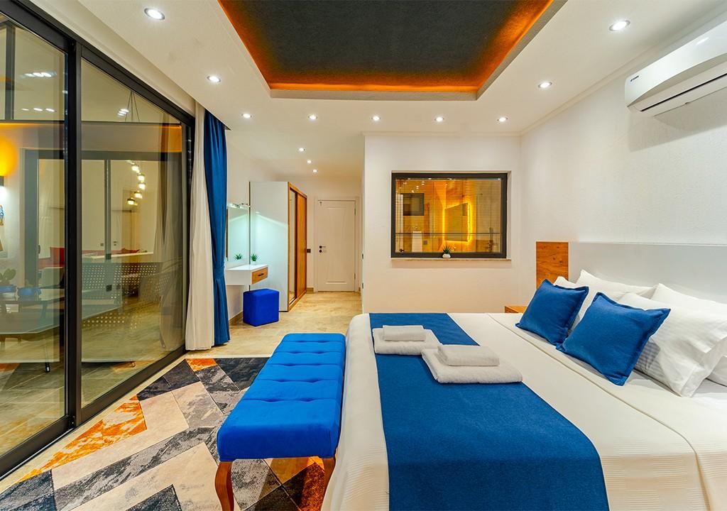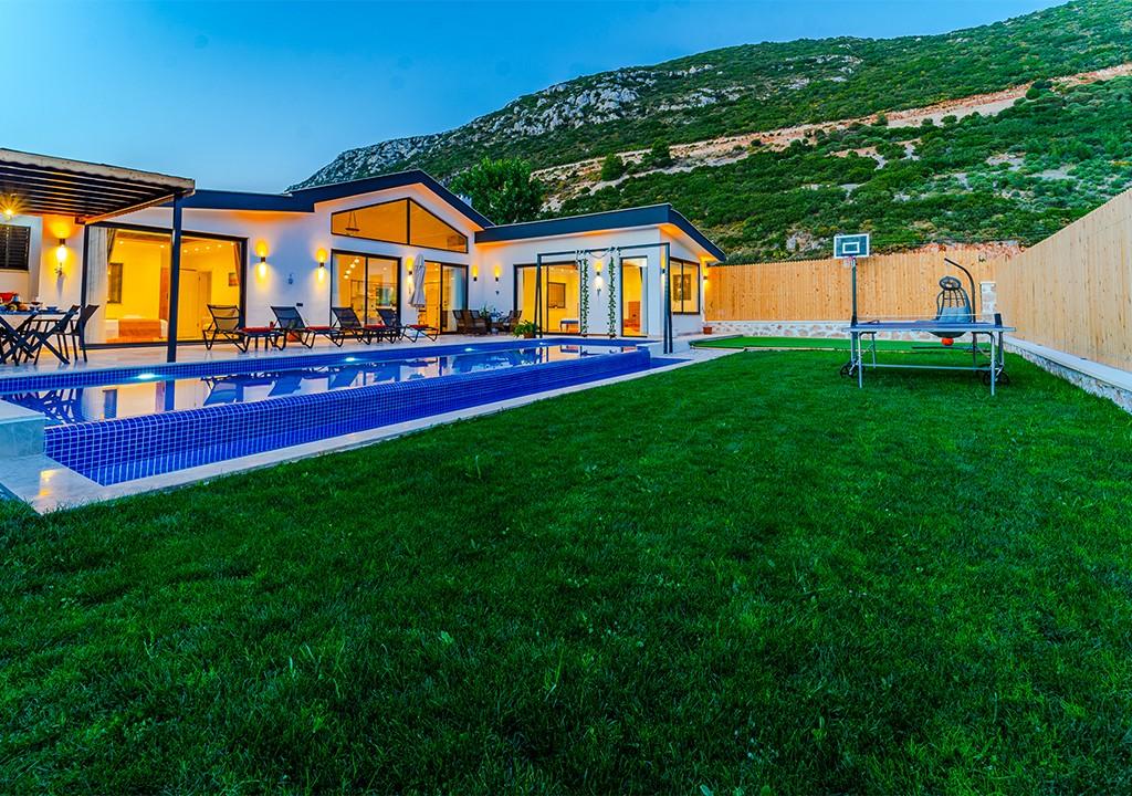 Located in the village of Bezirgan in Kalkan, Villa is nestled amidst greenery. With 2 bedrooms and a capacity for 4 people, the pool area and garden are not visible from the outside, making it an ideal choice for conservative families and honeymoon couples.