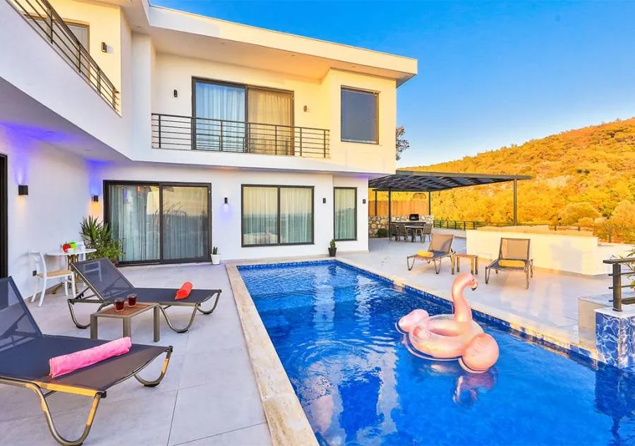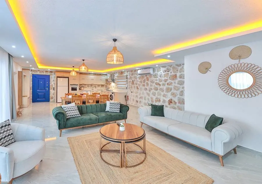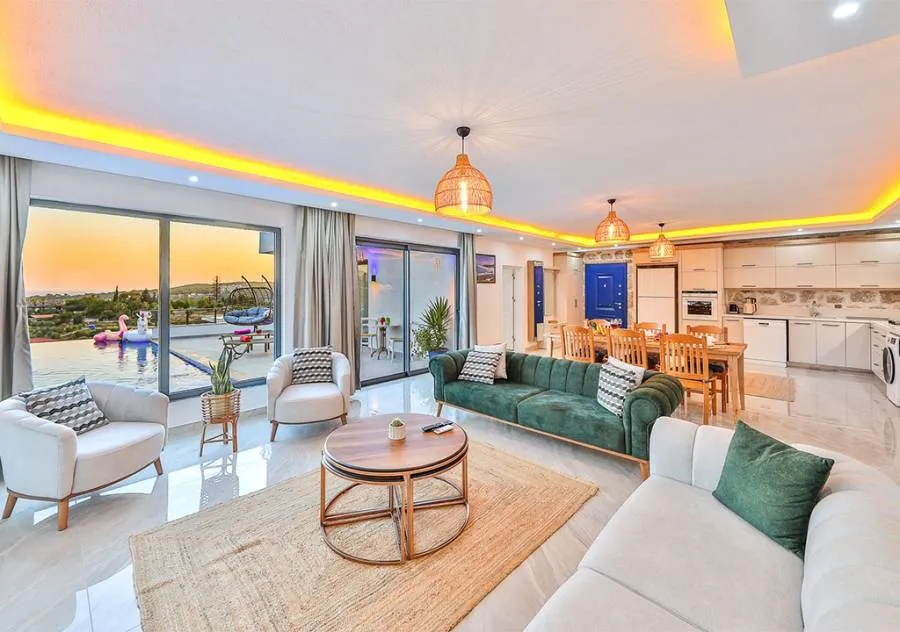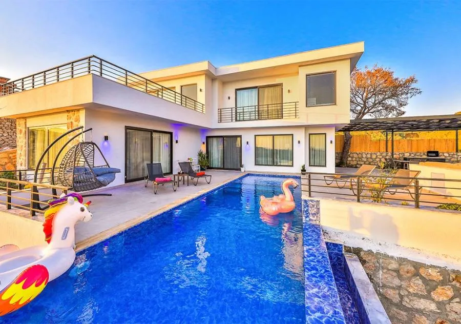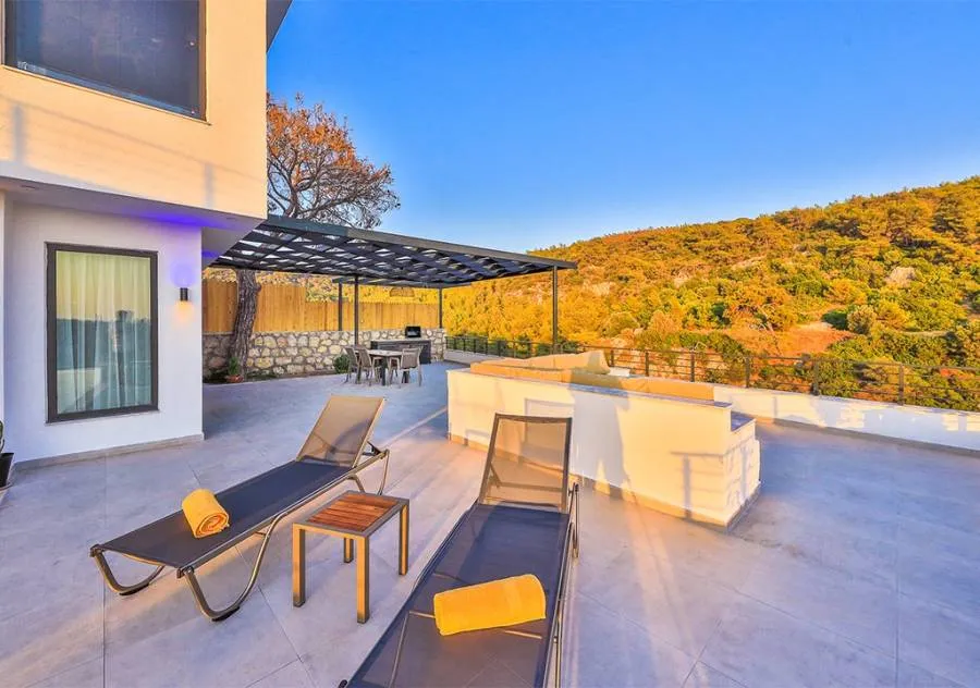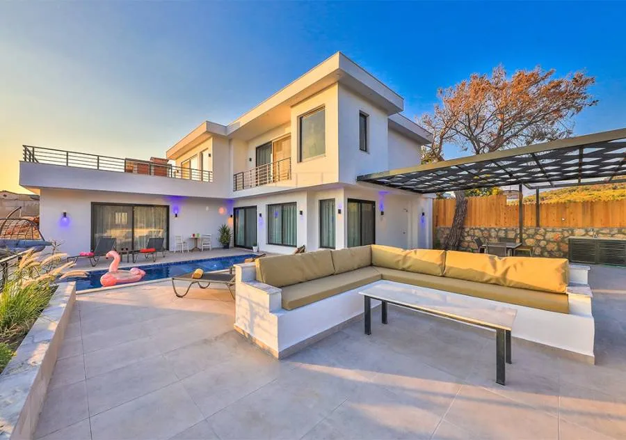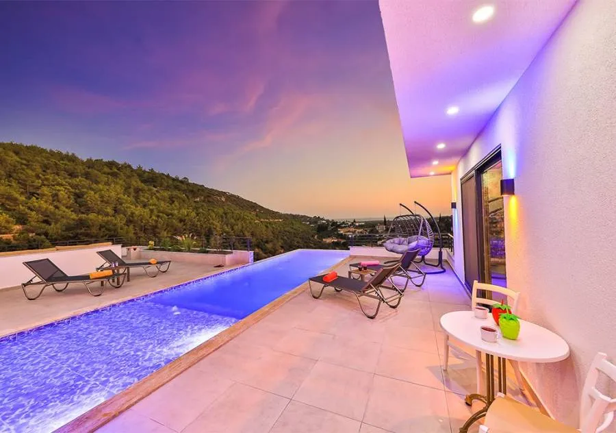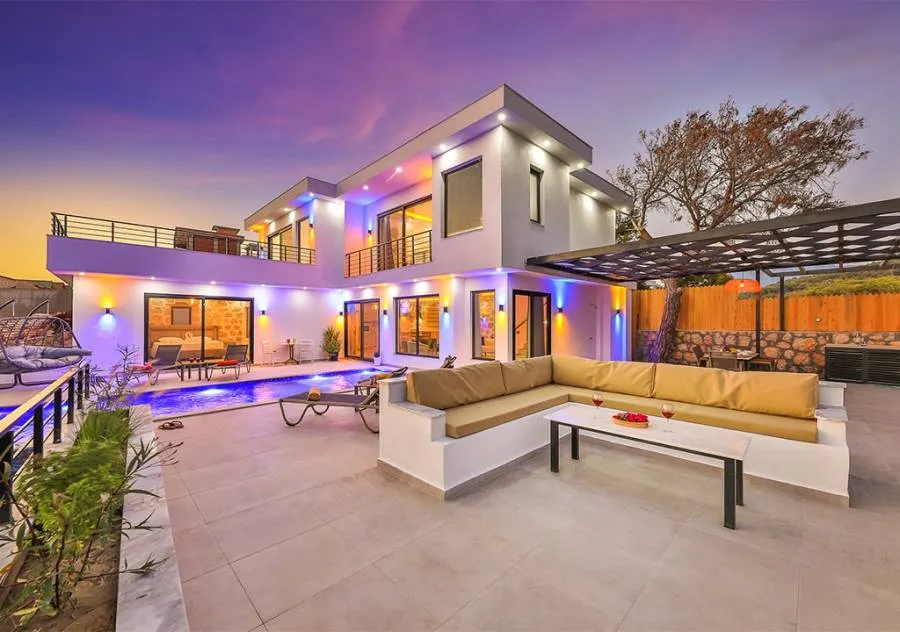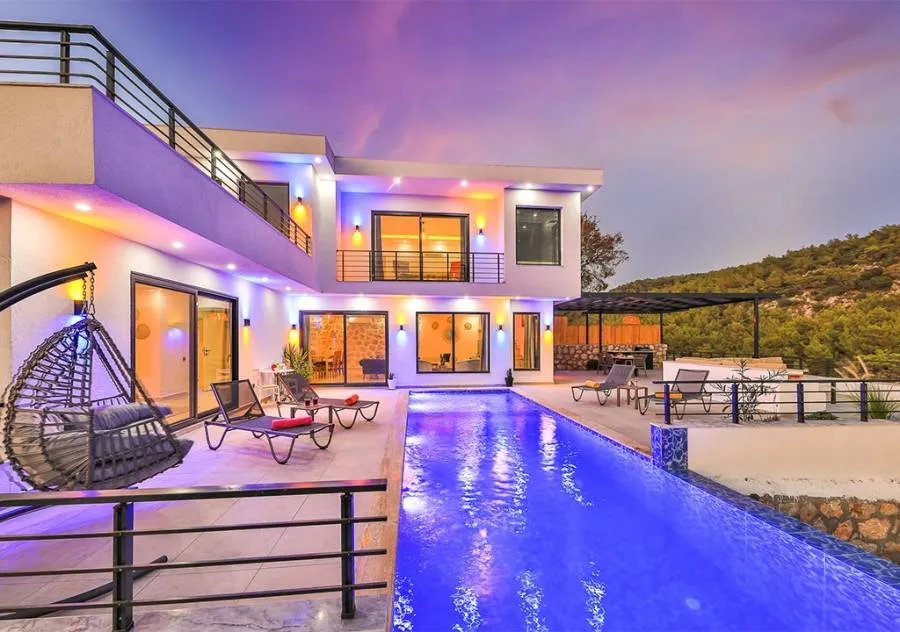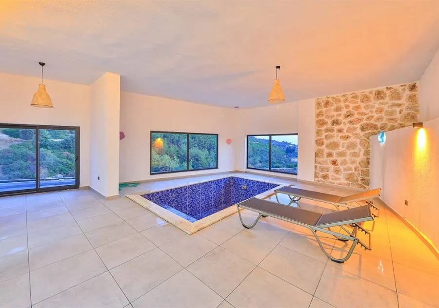 Villa, located in the Patara region of Kalkan, is a 3-bedroom villa. Situated amidst nature, it offers partial sea views and a heated indoor pool for a delightful holiday experience. It's an ideal choice for large families and groups of friends.
