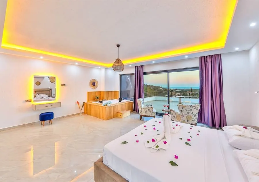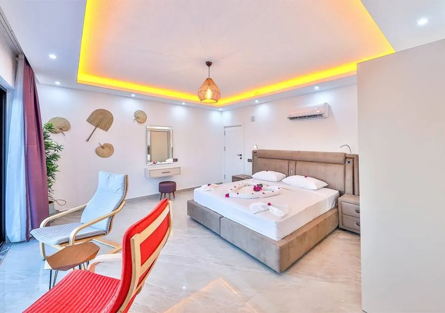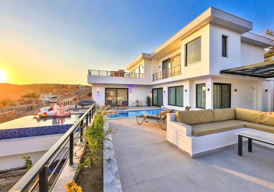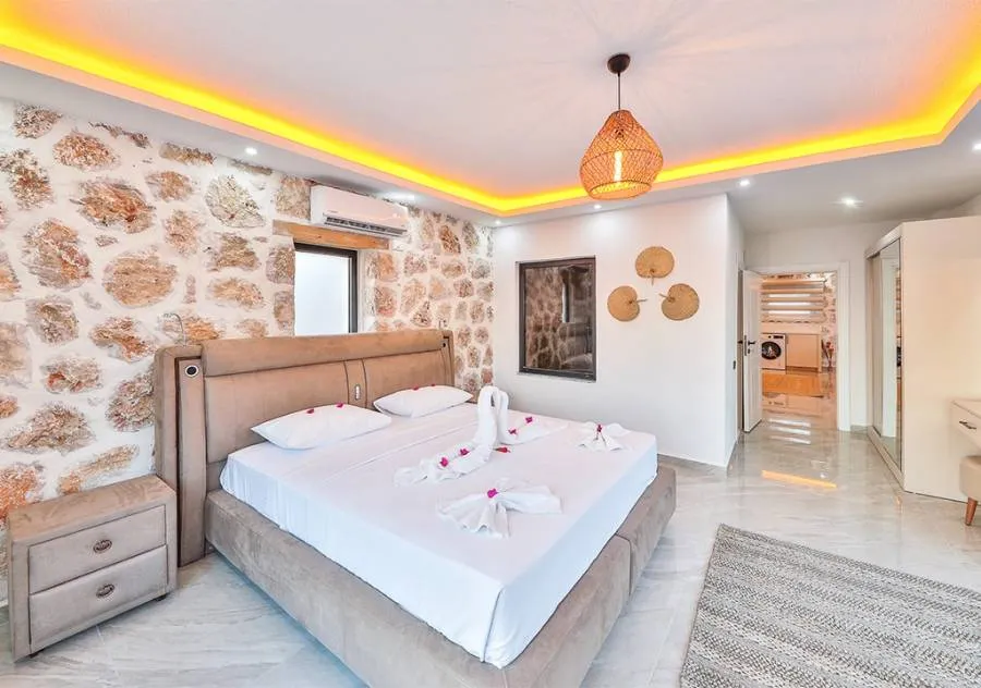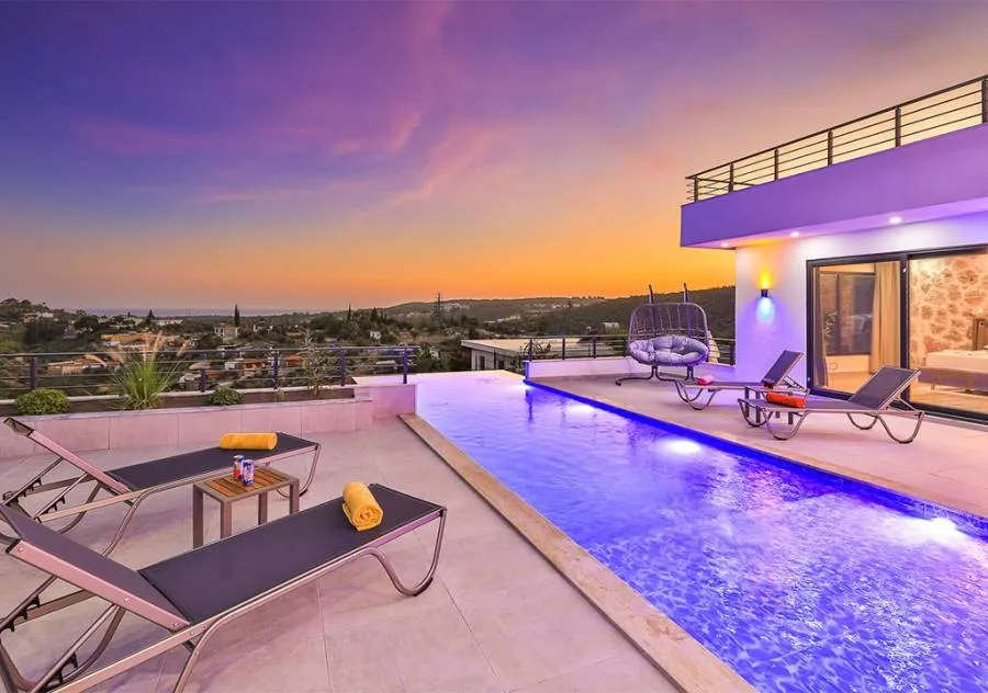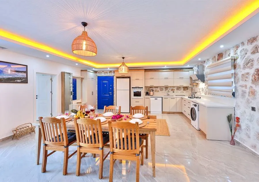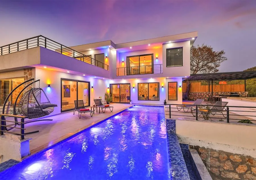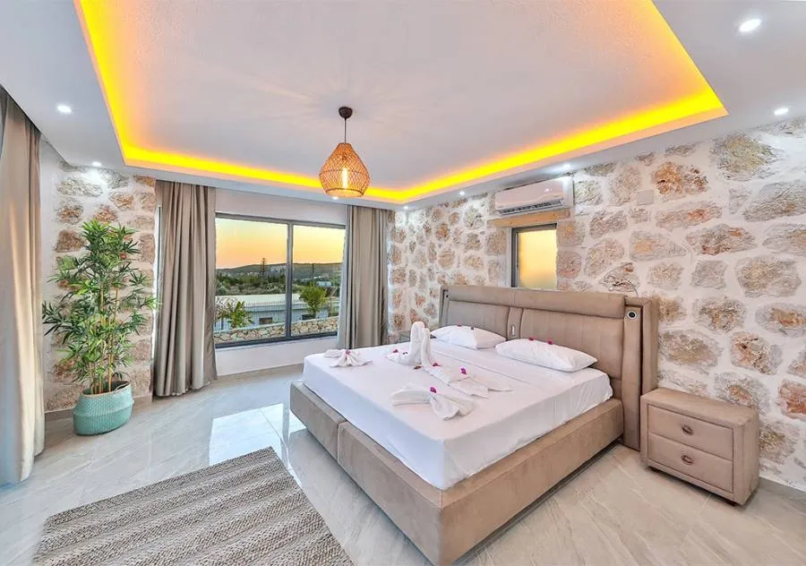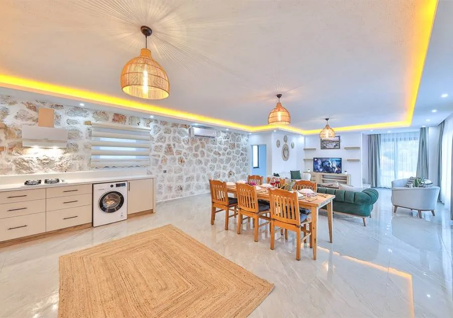 Villa, located in the Patara region of Kalkan, is a 3-bedroom villa. Situated amidst nature, it offers partial sea views and a heated indoor pool for a delightful holiday experience. It's an ideal choice for large families and groups of friends.