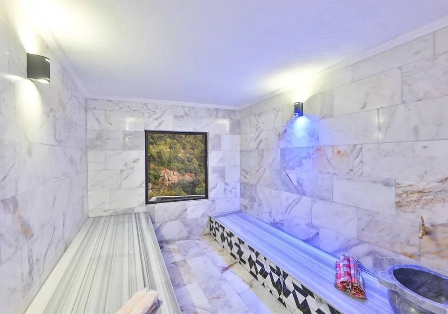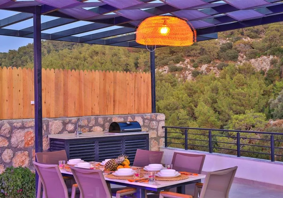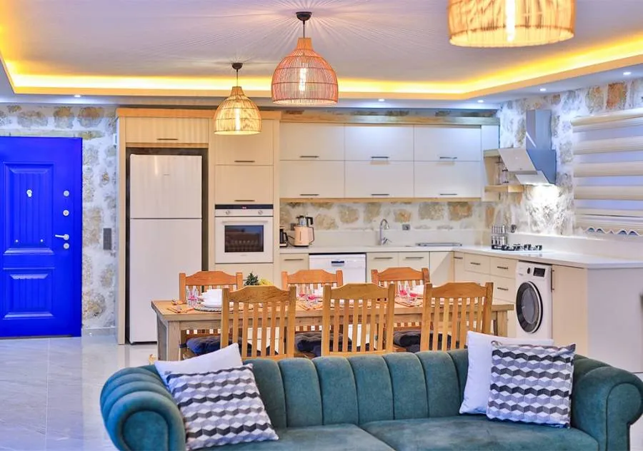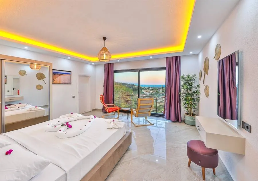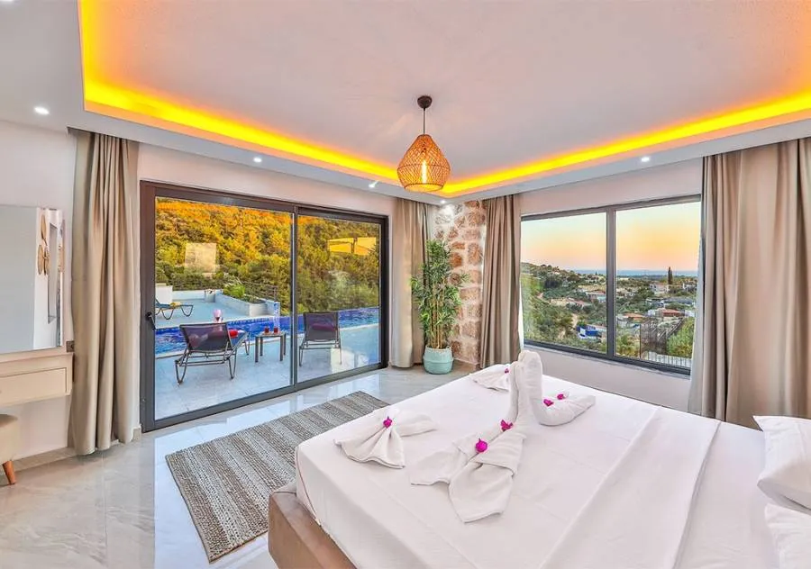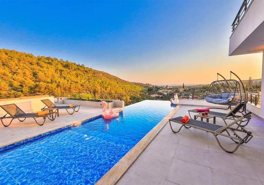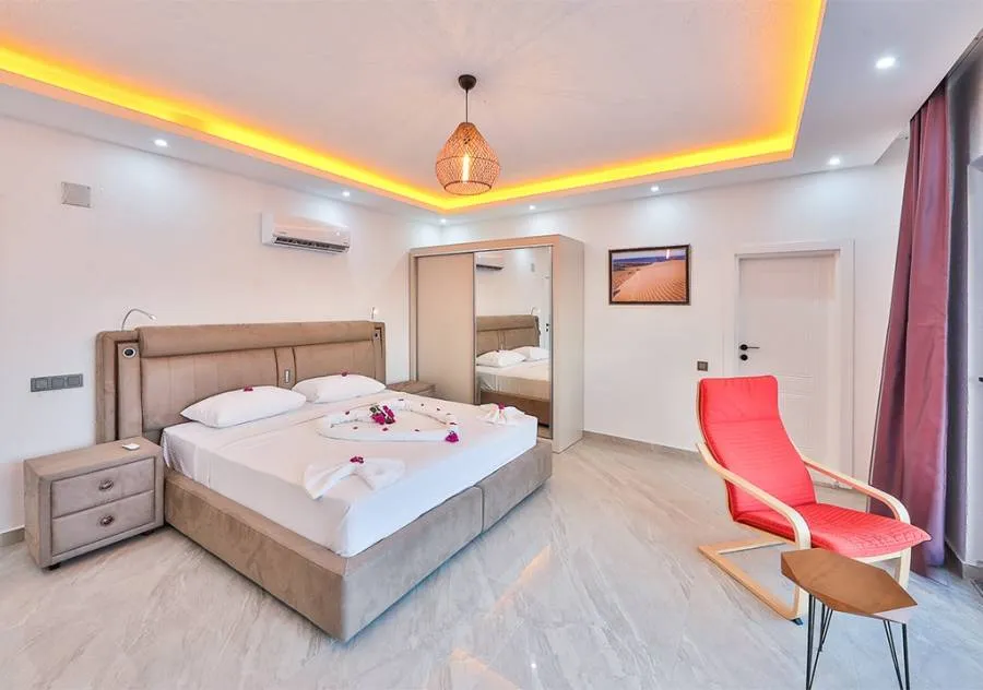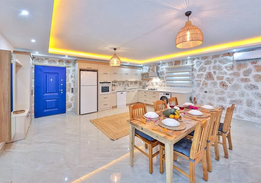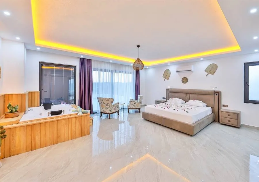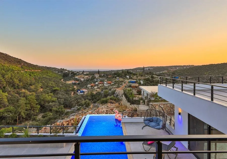 Villa, located in the Patara region of Kalkan, is a 3-bedroom villa. Situated amidst nature, it offers partial sea views and a heated indoor pool for a delightful holiday experience. It's an ideal choice for large families and groups of friends.