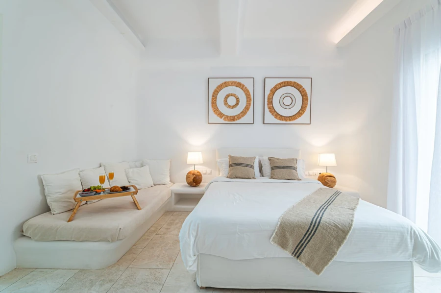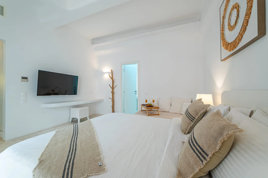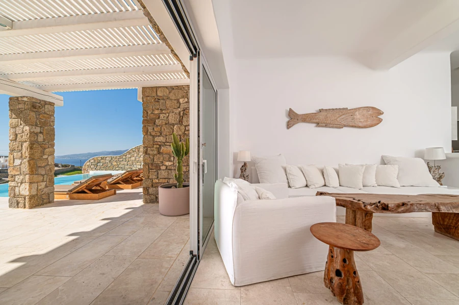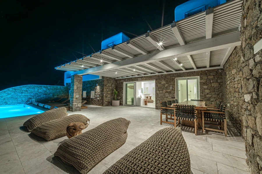 Inside, clean whitewashed walls, natural textures, and curated furnishings create a sense of understated elegance. Outside, the 30 sq. meter infinity pool is the star of the show—positioned to soak in sweeping sunset views. Relax under shaded pergolas, dine al fresco with friends, or host intimate gatherings in the beautifully landscaped setting that harmonizes with the surrounding rocky terrain.
