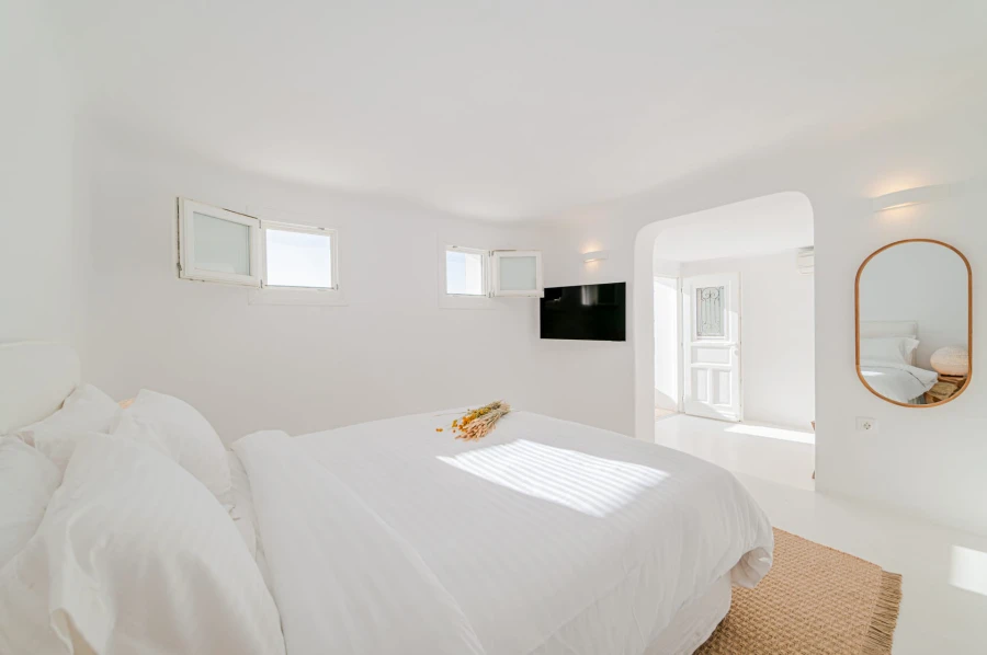 This exceptional 280 sq. meter luxury villa offers a dreamlike escape in the stunning Kastro area of Mykonos, just minutes from the new port. Overlooking the endless blue of the Aegean Sea and the nearby island of Tinos, the villa perfectly blends traditional Cycladic architecture with sleek modern design for an unforgettable holiday experience.