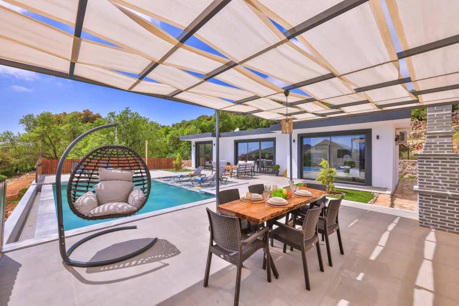 This private pool villa in Kaş Bayındır is an excellent choice for families with children and honeymoon couples. Surrounded by nature, it provides complete privacy, a spacious pool terrace, and a comfortable, stylish interior, ensuring a relaxing and unforgettable holiday.