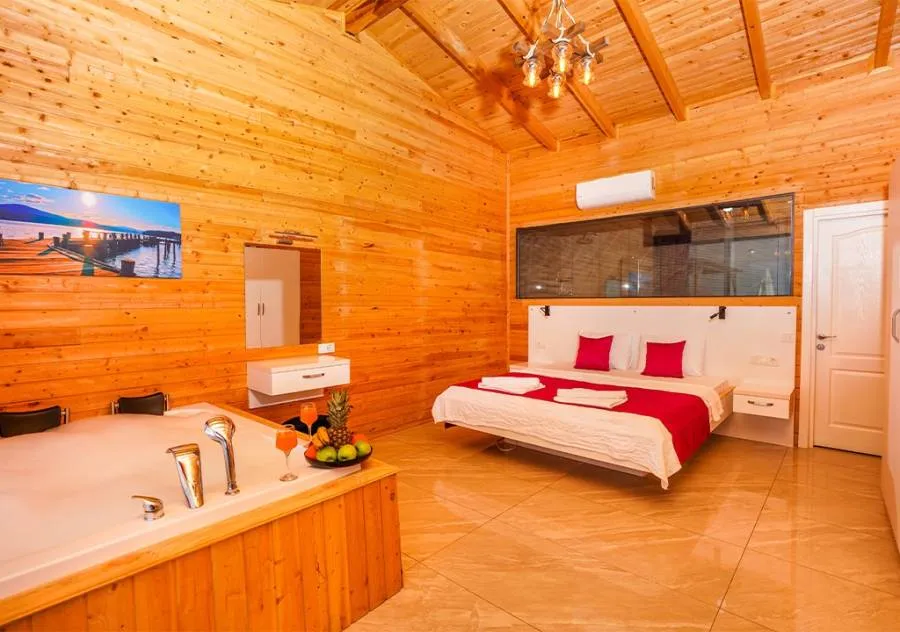 Double bed, Wardrobe, Vanity table, Air conditioning, Jacuzzi, bathroom.