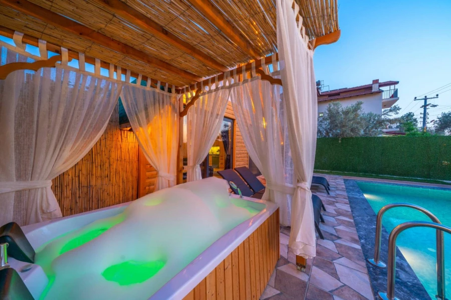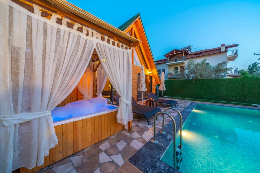 Villa is located in the beautiful Ovacık region of Fethiye, offers a private pool and a jacuzzi in the garden, making it an ideal choice for guests seeking relaxation.