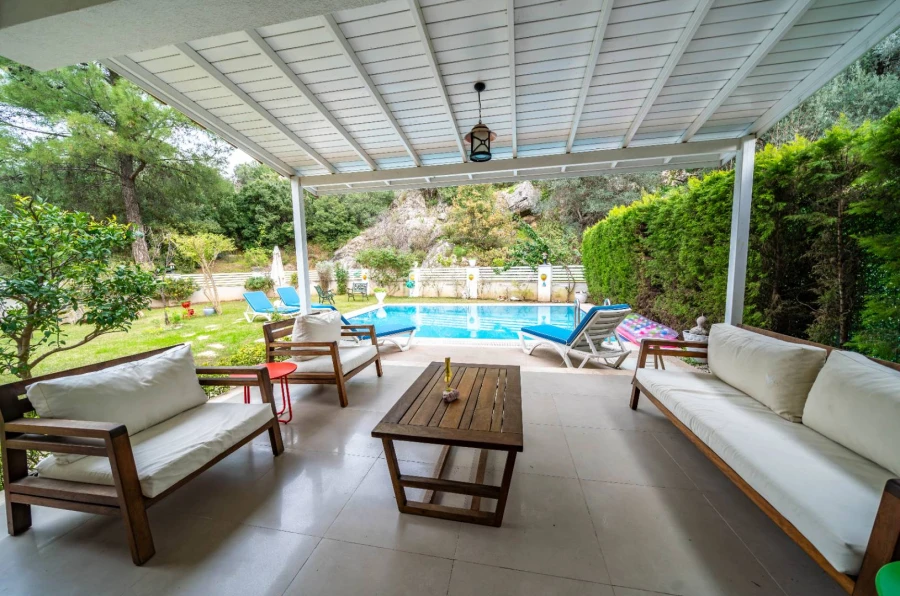 This private villa in Marmaris İçmeler features a spacious, lush garden and a private pool.