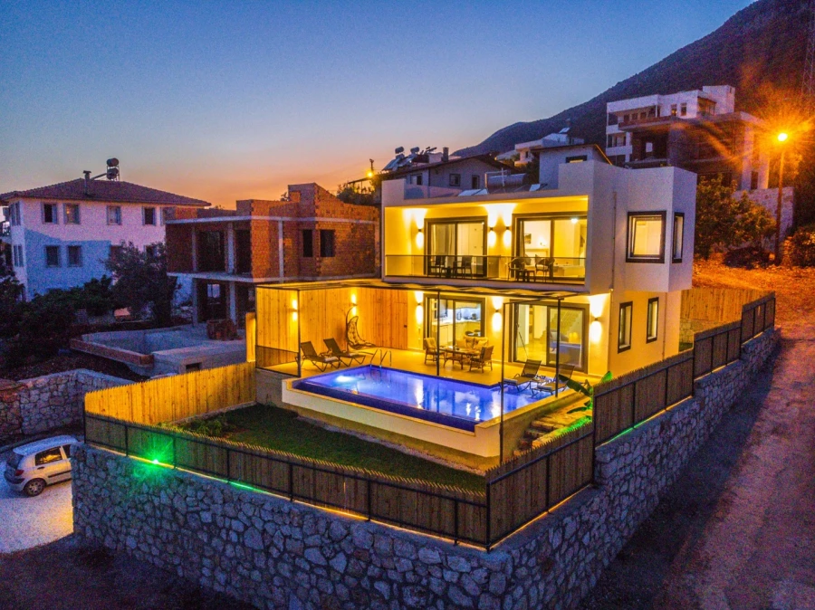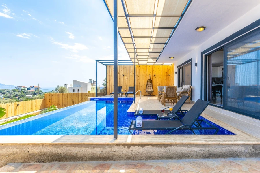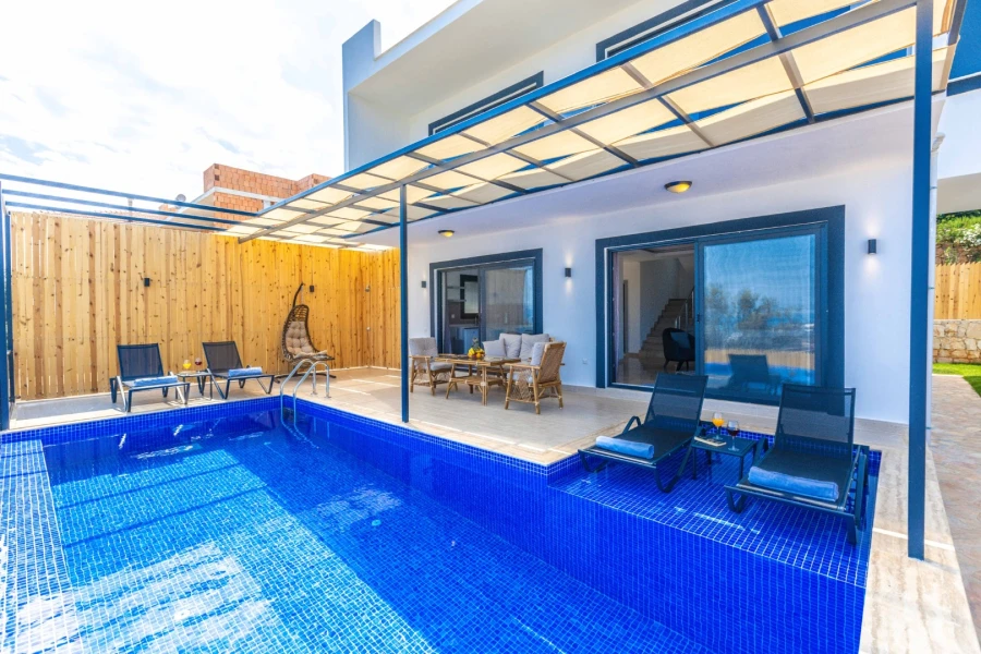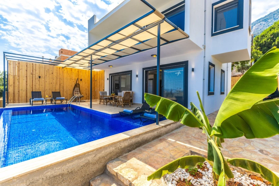 This private pool villa in Kaş-Gökseki is the perfect retreat for honeymoon couples and small families seeking peace and relaxation. Surrounded by breathtaking sea and nature views, this villa offers a tranquil escape with a spacious garden and complete privacy.