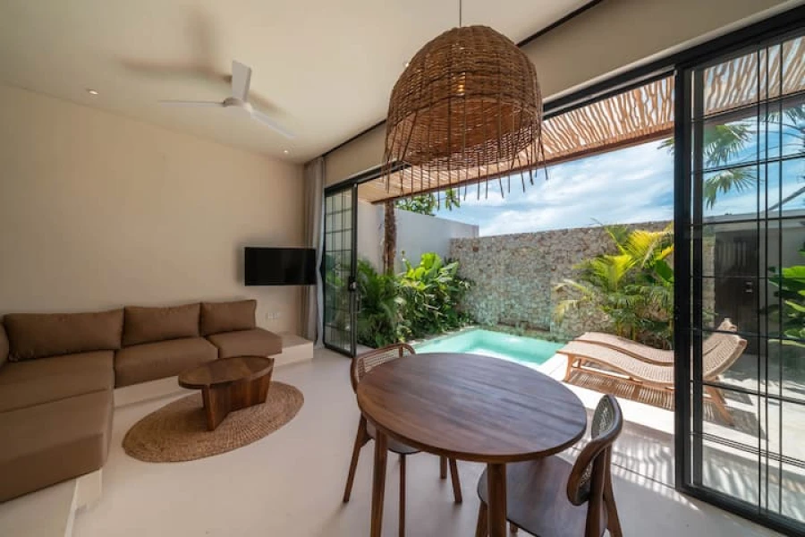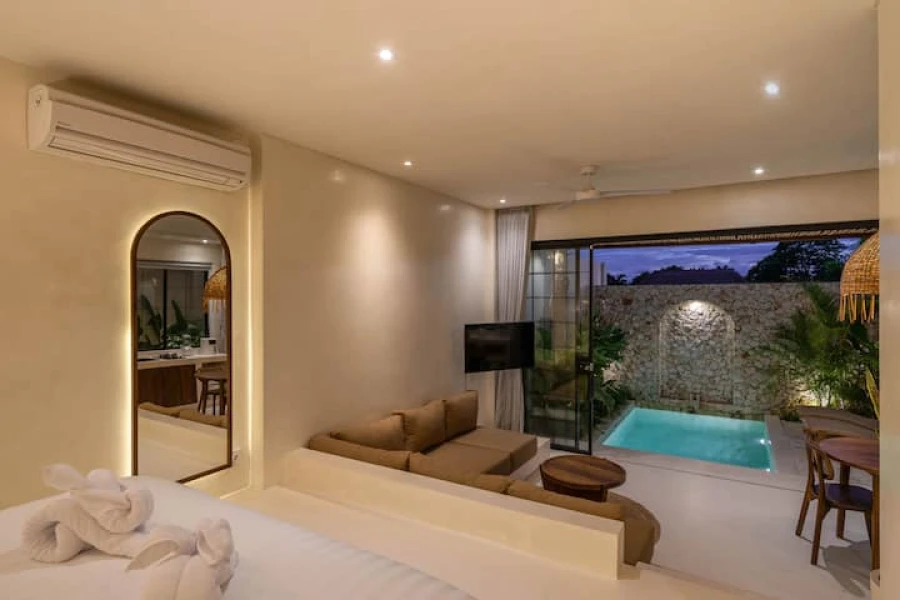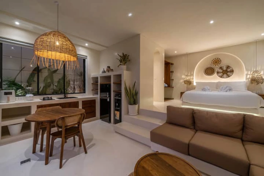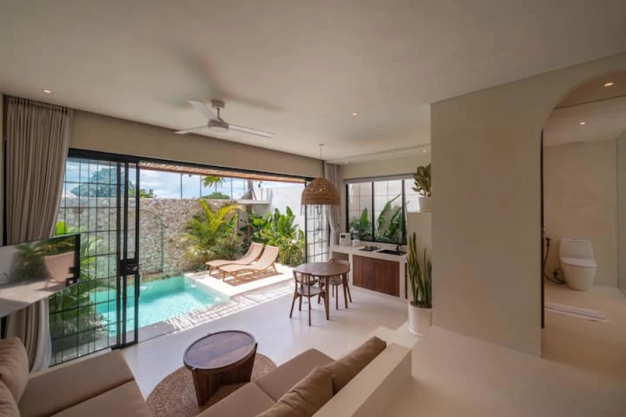 Escape to our serene Bali retreat in the peaceful Umalas area. This beautifully designed villa offers a perfect blend of luxury and comfort for those seeking tranquility.