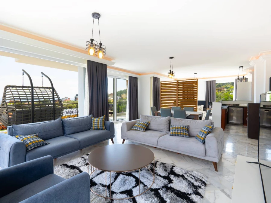 Its garden is equipped with barbecue facilities. The accommodation units consist of bedrooms, a living room, kitchen, balcony, and bathroom. The kitchen is fully equipped with an oven, stove, refrigerator, dishwasher, and kitchen utensils, allowing you to prepare your own meals. The bathroom also includes a washing machine. Additional features include air conditioning, a seating area, TV, and free internet access.