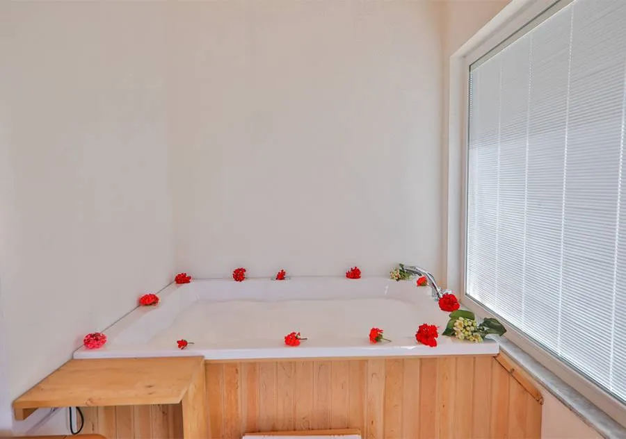 conditioning, wardrobe, TV, jacuzzi, bathroom and toilet.