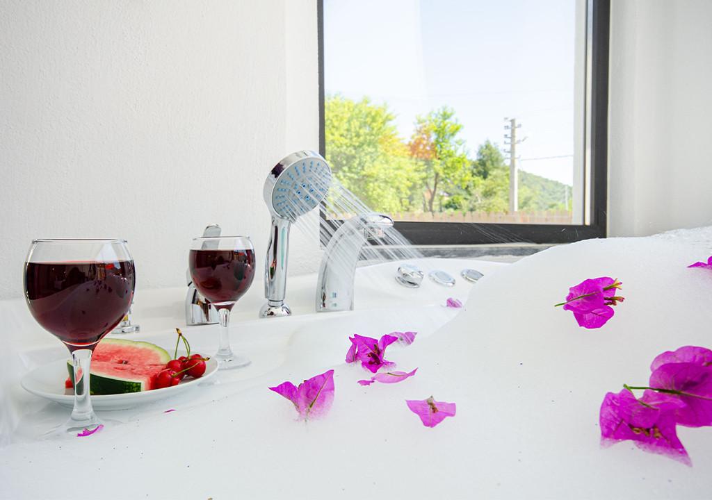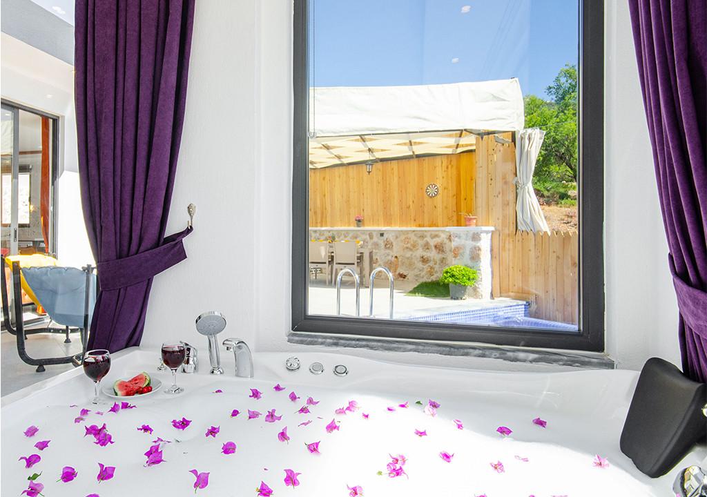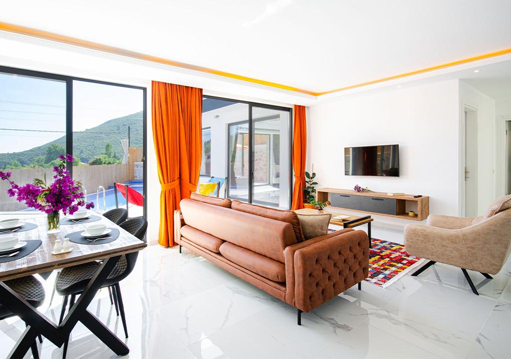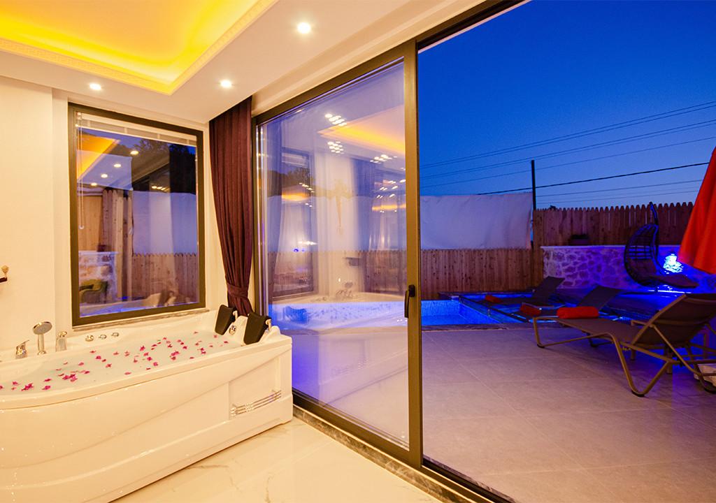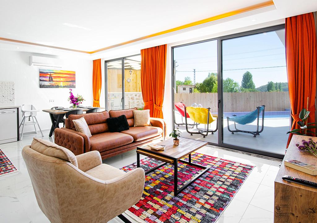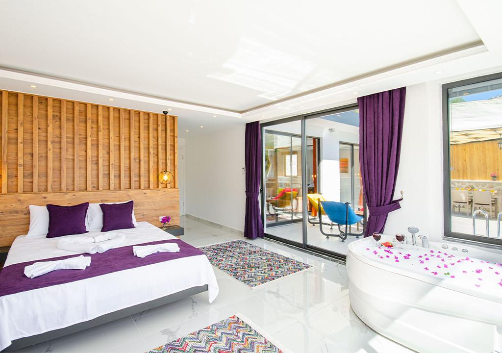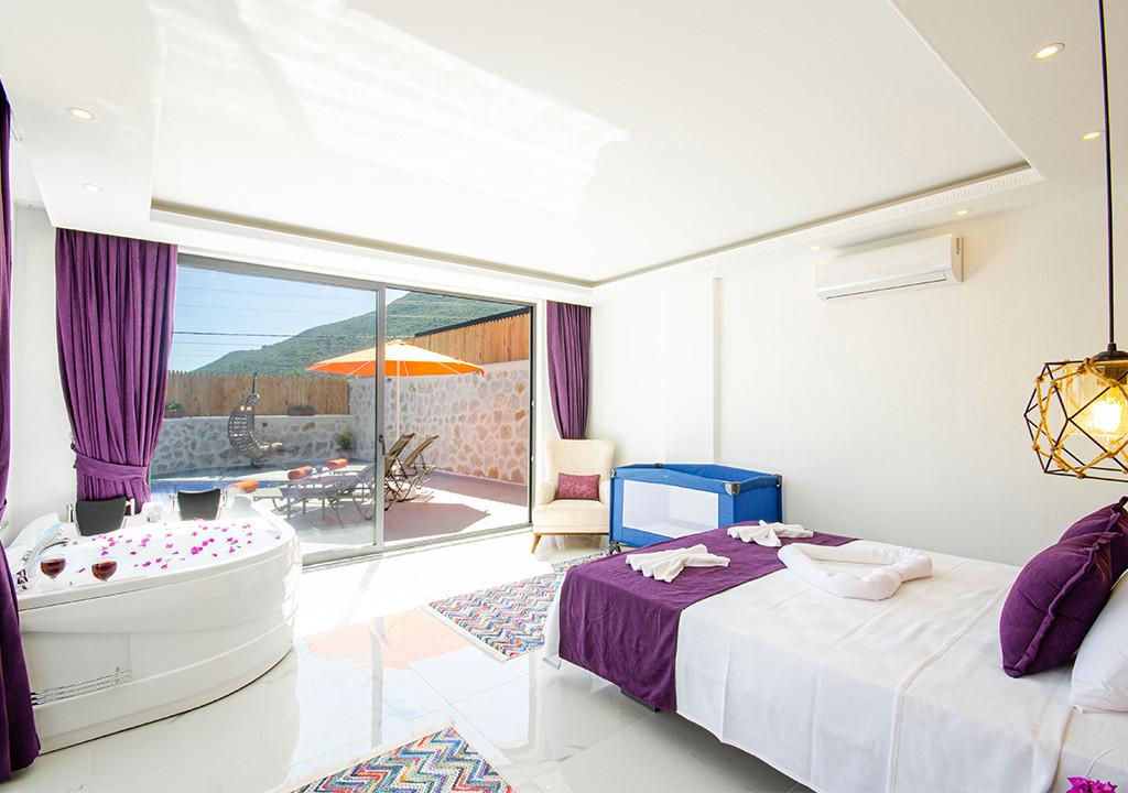 Villa, located in the village of Sarıbelen in Kalkan, is a 1-bedroom villa nestled amidst nature. The pool area, unseen from the outside, makes Villa a suitable choice for conservative families. Our villa, ideal for honeymoon couples, offers you the opportunity to have an unforgettable holiday.