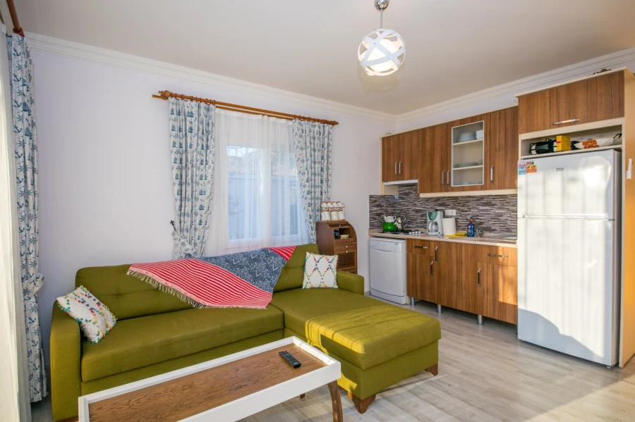 This sea villa is located in Söğüt Village, which is just near to Marmaris, attracts attention with its location right on the sea. It is located among the quietest and calmest bays of Muğla in nature. There is no need to describe the deep blue sea right in front of the house. This villa has 1 Bedroom and 1 Living Room, standard capacity is 2 person.