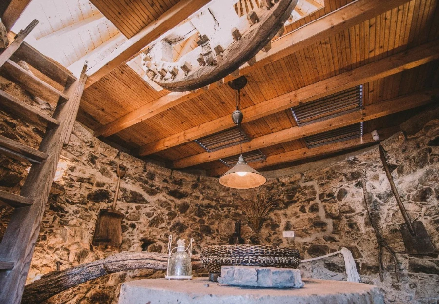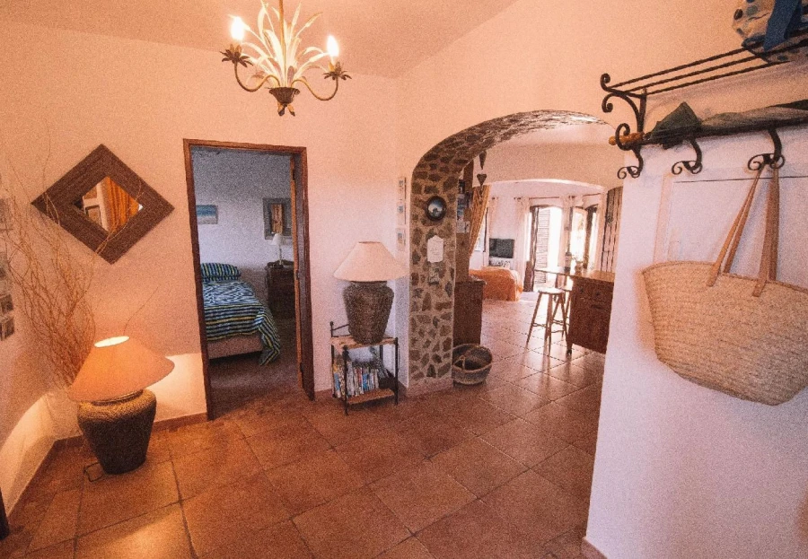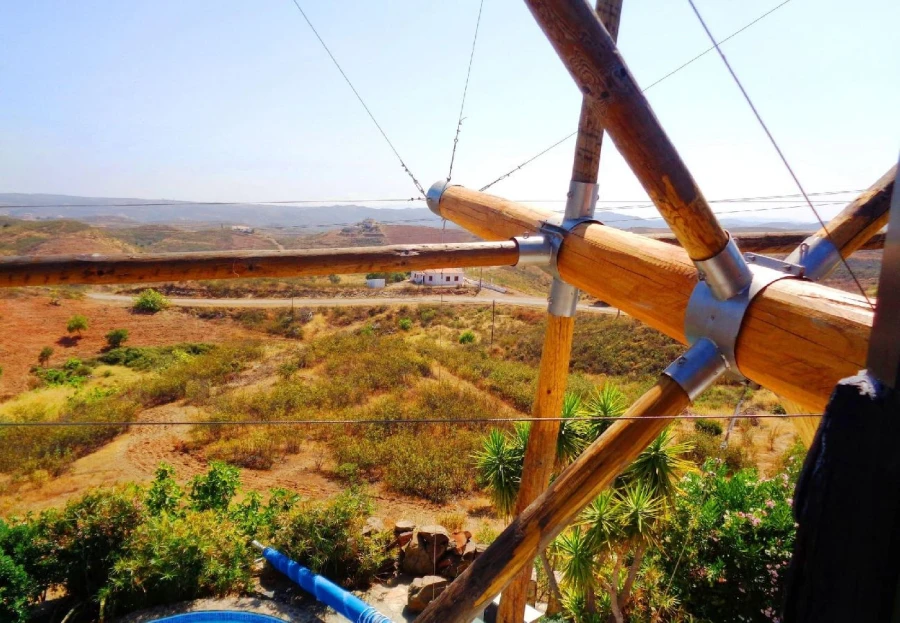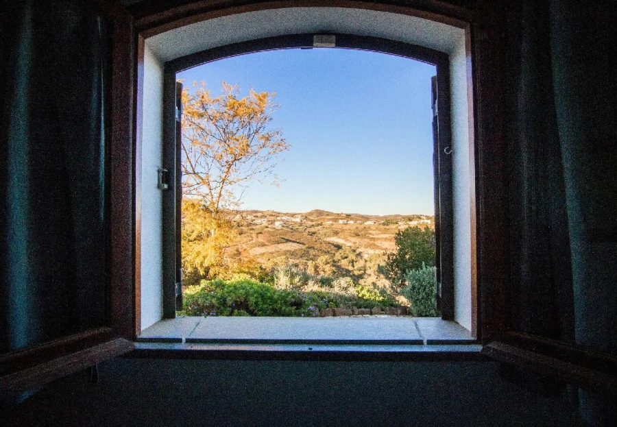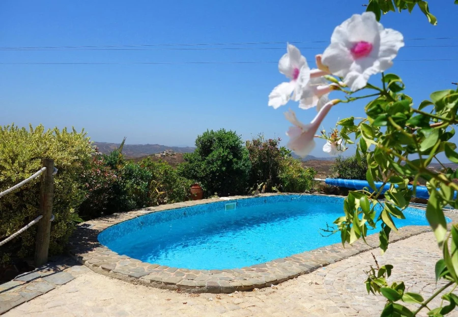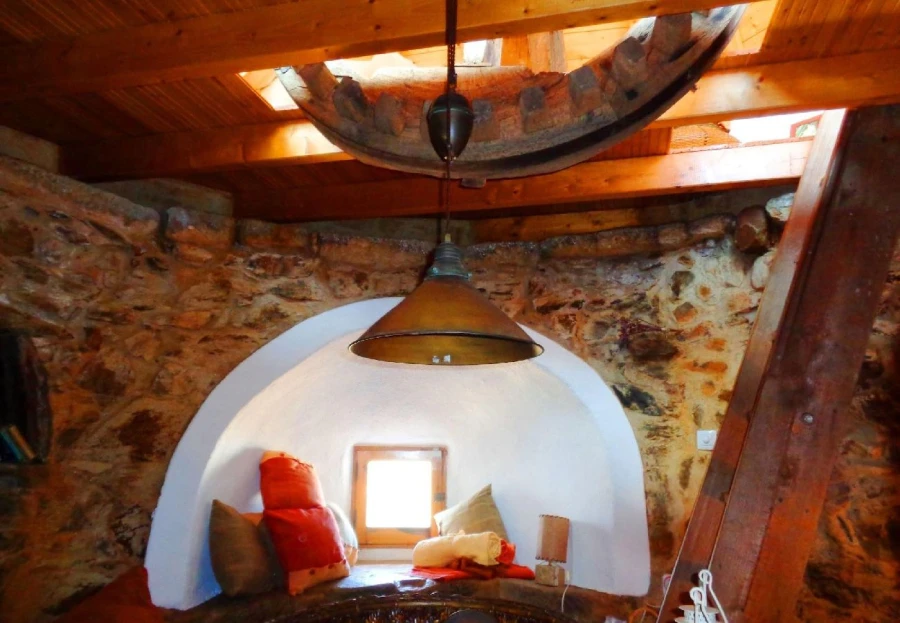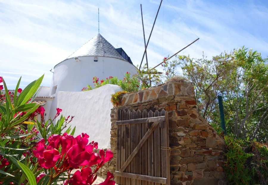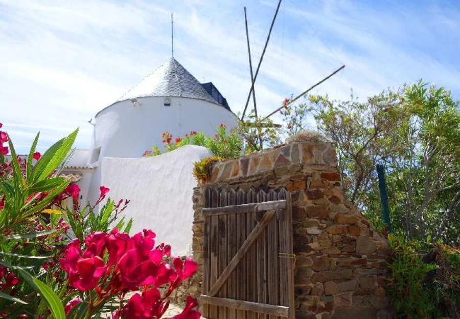 This charming, restored windmill offers stunning panoramic views from its elevated position. The cozy living space includes a country-style kitchen, a comfortable lounge, and two bedrooms. A spiral staircase leads to the windmill tower, where you can enjoy 360-degree views of the surroundings. The property features a saltwater pool, shaded dining areas, and lush natural landscapes. Located just 15 minutes from Tavira, this peaceful rural retreat is perfect for escaping the everyday hustle. A car is necessary for access.