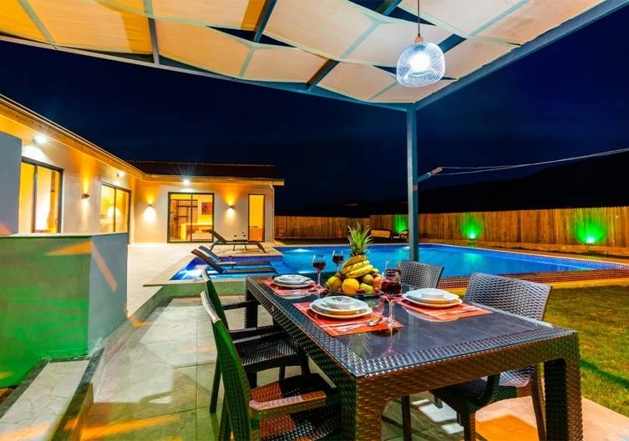 Electricity, water, gas, internet, daily pool and garden maintenance, initial entrance cleaning to the villa are included in the price. Extra cleaning request, sheet and towel change, transportation, car rental, and similar services are not included in the price.
