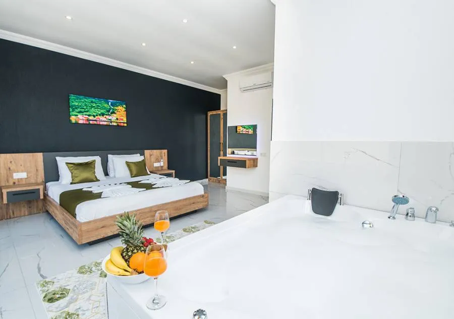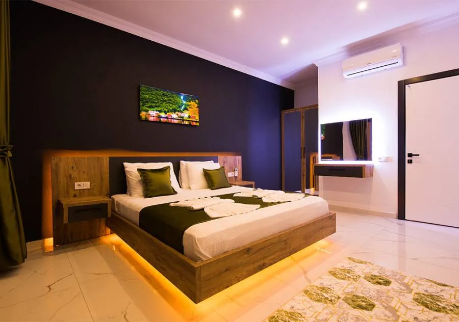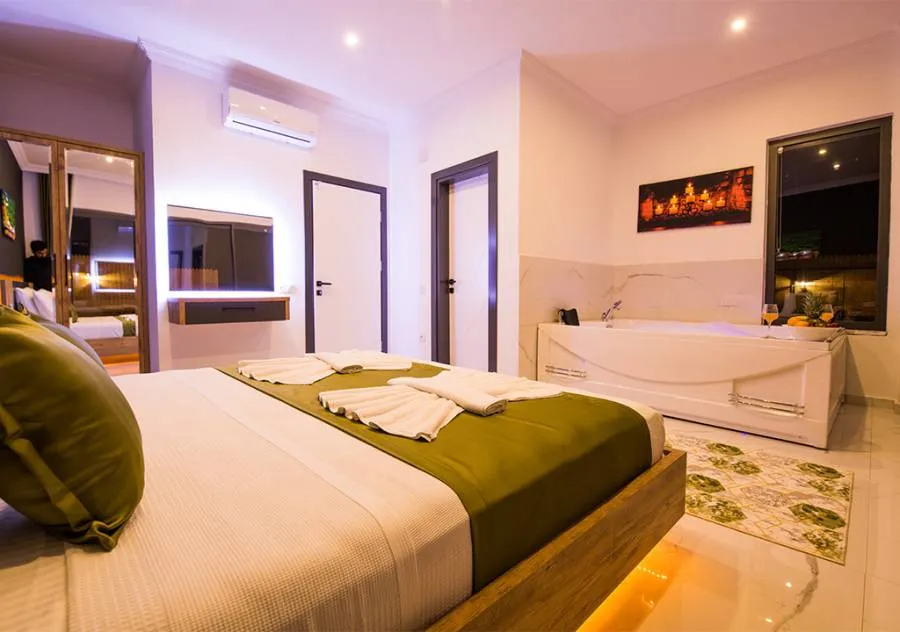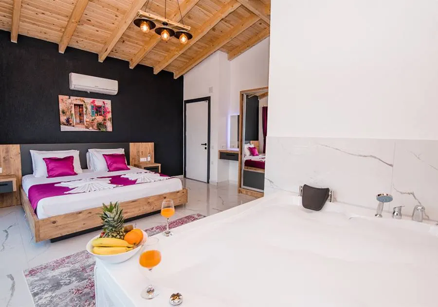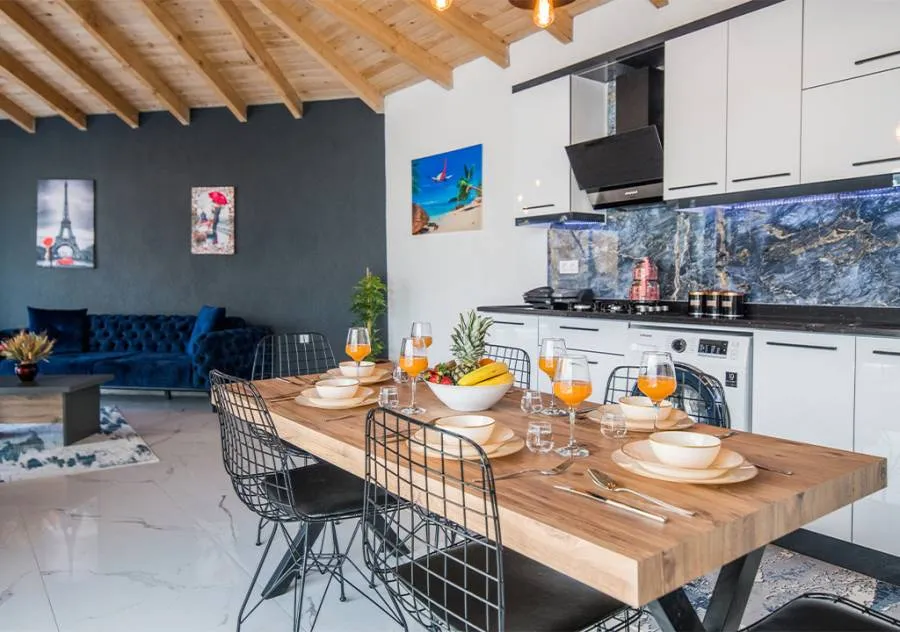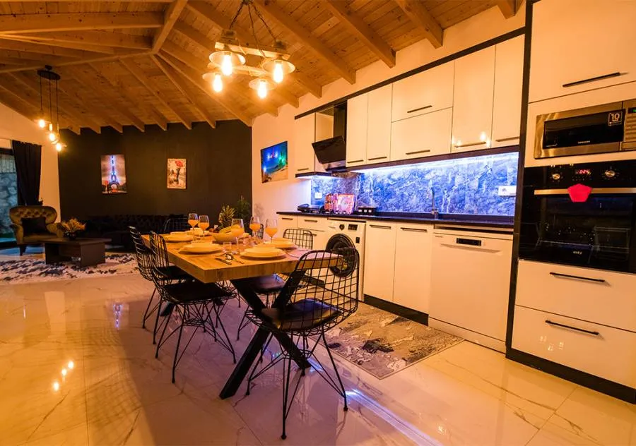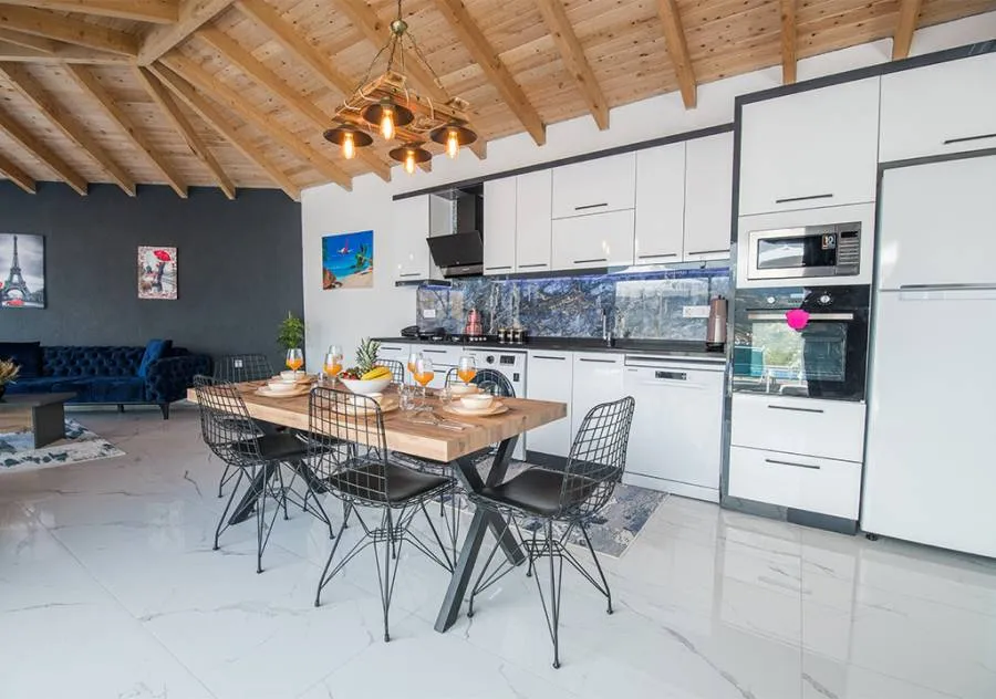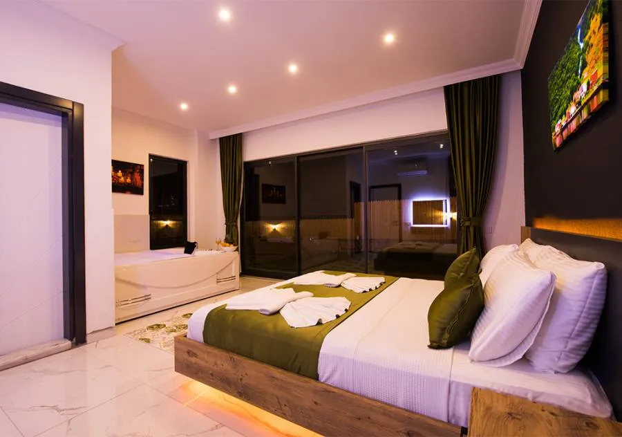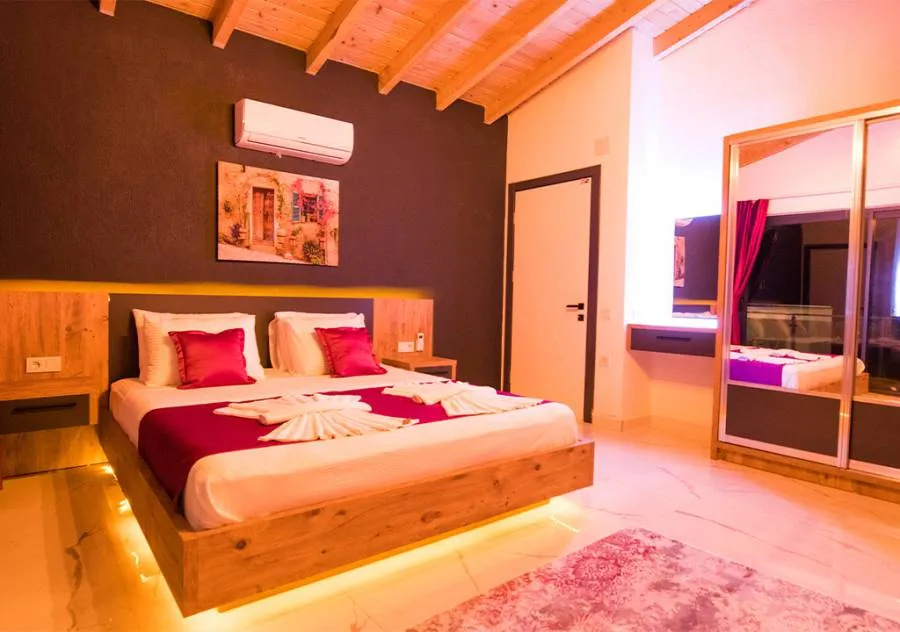 Villa, located in the Yeşilköy area of Kalkan, is a villa with 2 bedrooms and a capacity for 4 people. Situated amidst nature, the pool and garden area of our villa are not visible from the outside, making it a suitable choice for conservative guests and honeymoon couples.