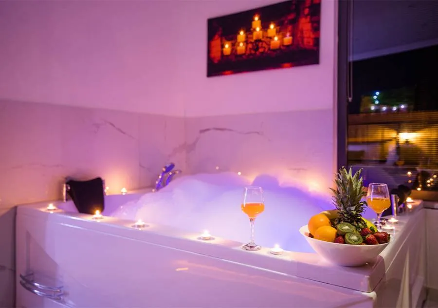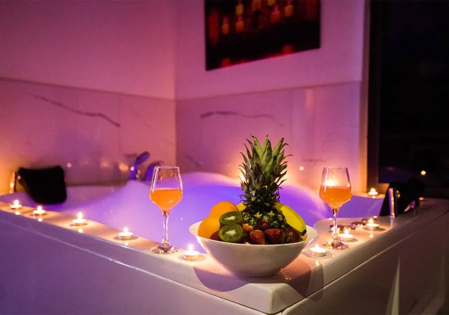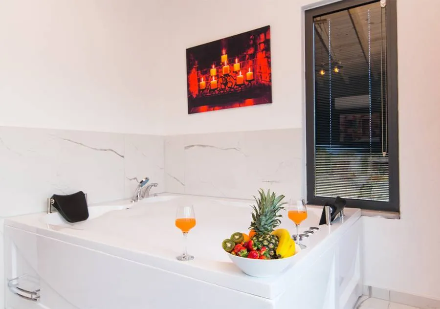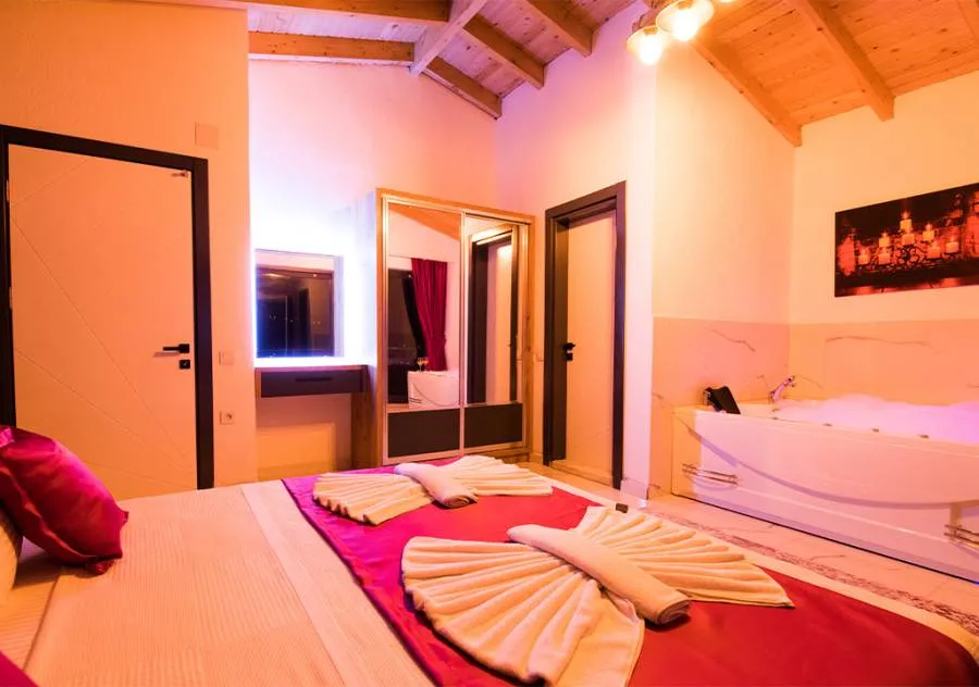 Double bed, wardrobe, dressing table, air conditioning, Jacuzzi, bathroom.